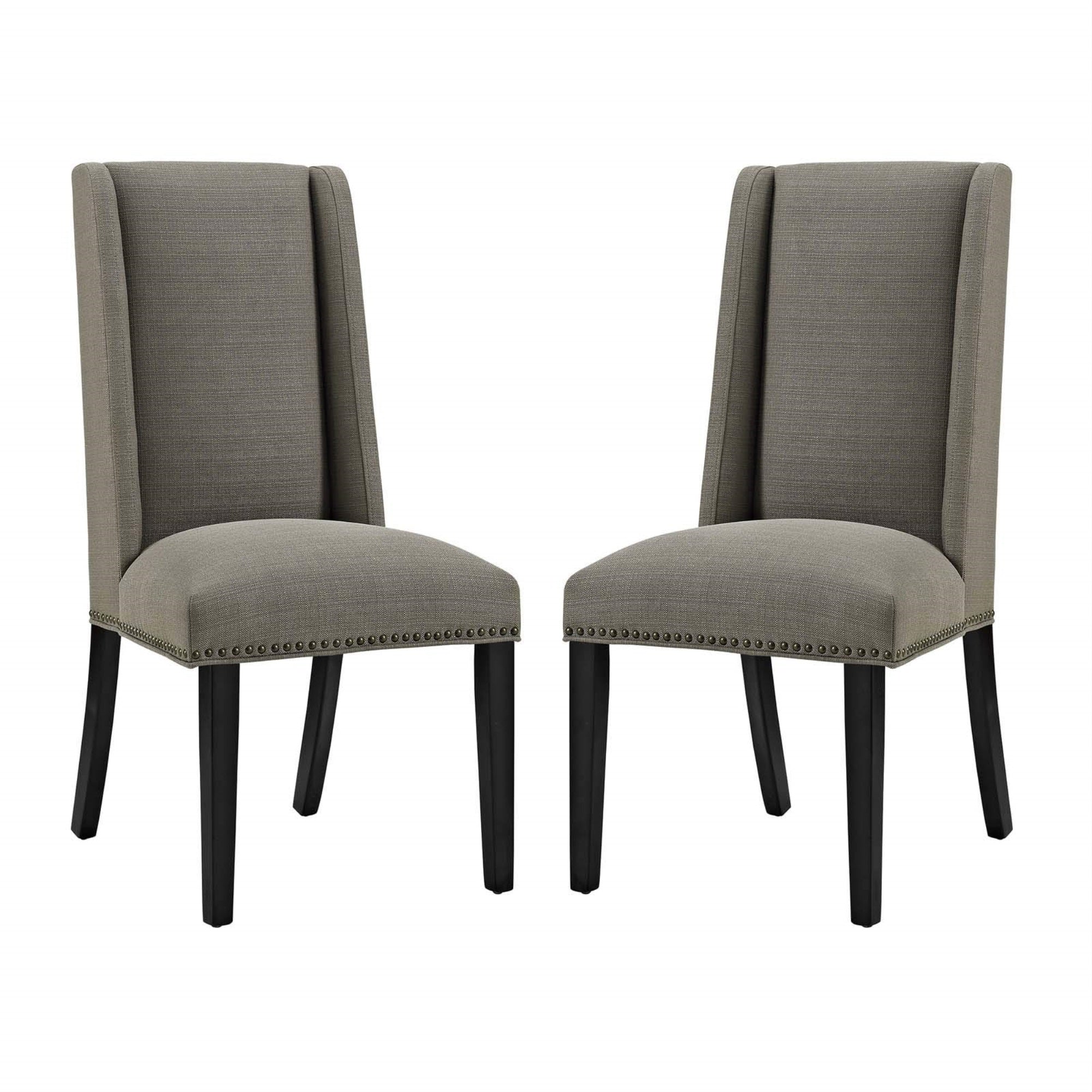 Casafoyer Baron Modern Tall Back Wood Upholstered Fabric Two Dining Chairs In Granite