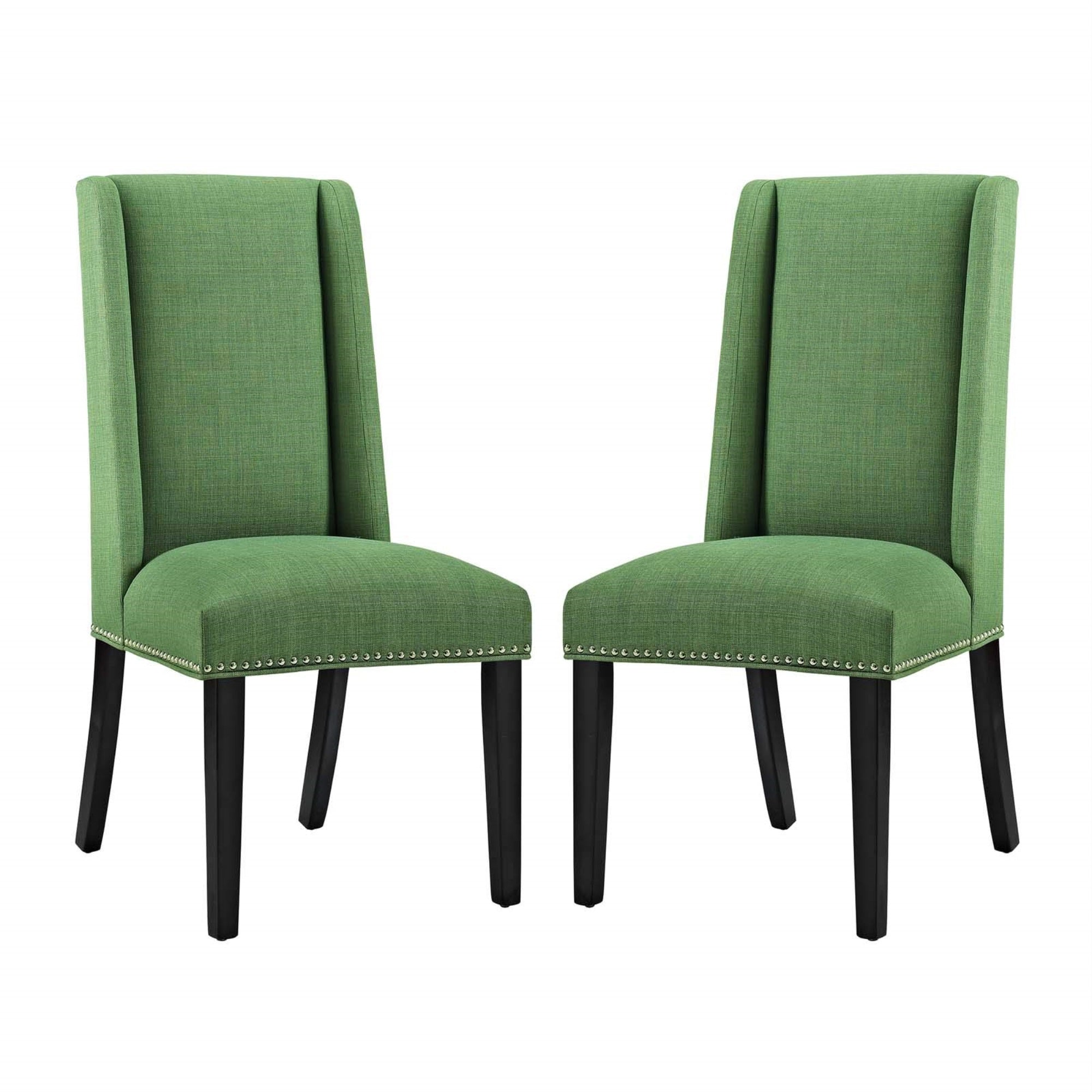 Casafoyer Baron Modern Tall Back Wood Upholstered Fabric Two Dining Chairs In Green