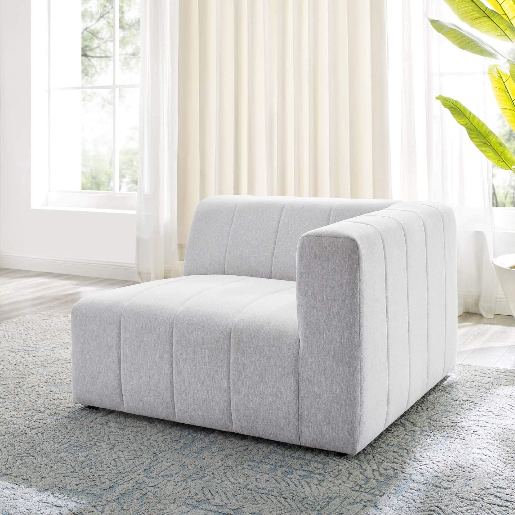 Indulge In Comfort And Relaxation By Creating A Custom Living Room And Lounge Area With The Bartlett Upholstered Fabric Right-Arm Chair. Featuring Subtle Channel Tufting, Rounded Corners, And Soft Polyester Fabric Upholstery, This Sectional Sofa Right-Arm Chair Brings Retro Modern Style And Contemporary Allure To Your Living Space. Dense Foam Padding And A Pocket Coil Spring System In The Cushions Offer A Luxe Seating Experience With Premium Support And Comfort. With A Sturdy Frame Crafted From Solid Wood And Plywood, This Living Room Chair Features Modular Connectors To Keep Each Sectional Sofa Piece Secure And Non-Marking Foot Caps To Protect Flooring. Chair Weight Capacity: 331 Lbs.Set Includes:One - Bartlett Right-Arm Chair
