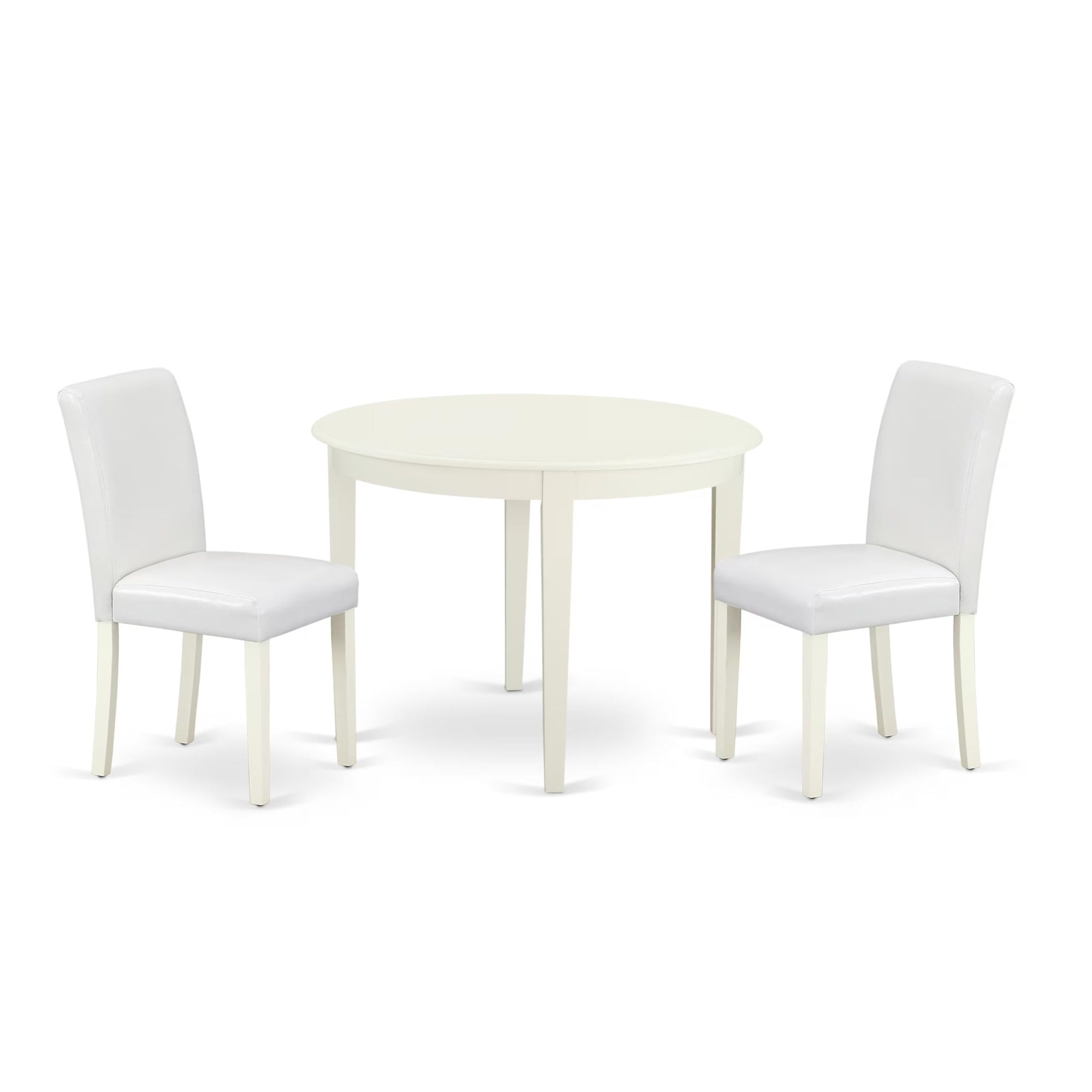 Casafoyer Boab3-Lwh-64 3 Piece Dining Set Contains A Round Kitchen Table And 2 White Faux Leather Parson Dining Room Chairs, 42X42 Inch, Linen White