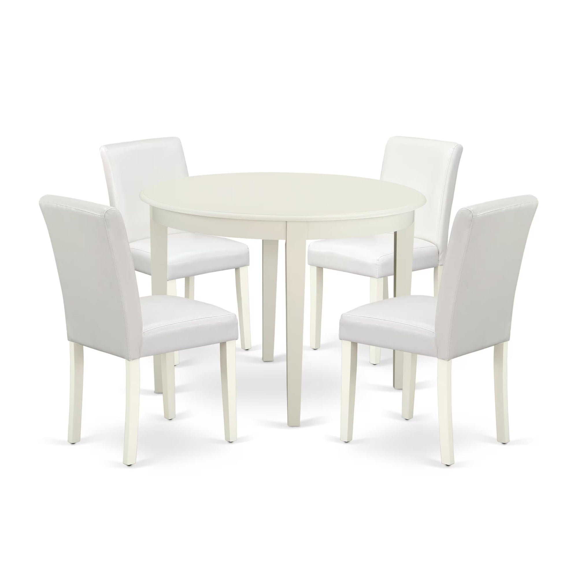 Casafoyer Boab5-Lwh-64 Boston 5 Piece Dining Set For 4 Includes A Round Kitchen Table And 4 Faux Leather Upholstered Parson Chairs, Linen White, 42X42 Inch