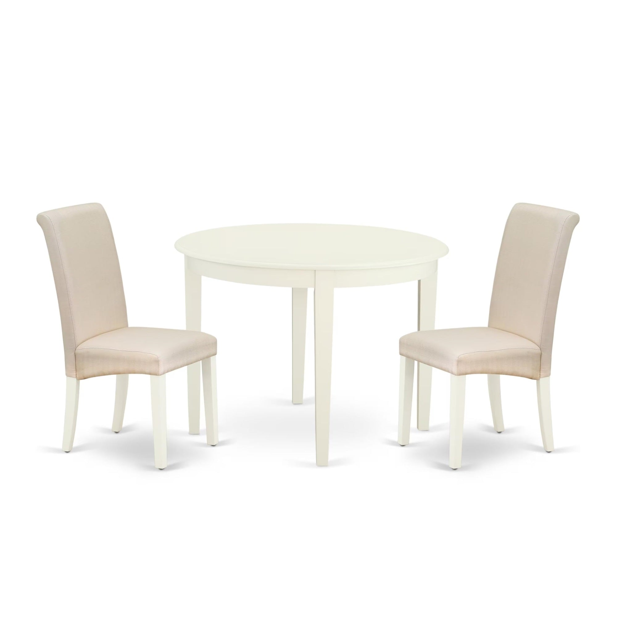 Casafoyer Boba3-Whi-01 3 Piece Kitchen Table & Chairs Set Contains A Round Dining Room Table And 2 Cream Linen Fabric Upholstered Parson Chairs, 42X42 Inch, Linen White