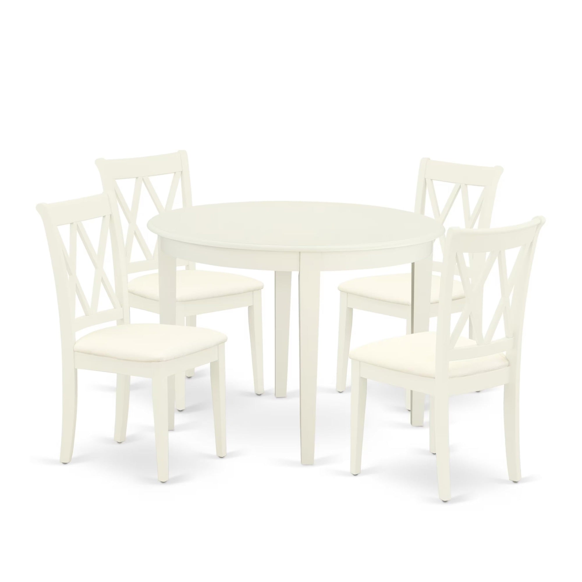 Casafoyer Bocl5-Whi-C 5 Piece Dinette Set For 4 Includes A Round Kitchen Table And 4 Linen Fabric Dining Room Chairs, 42X42 Inch, Linen White