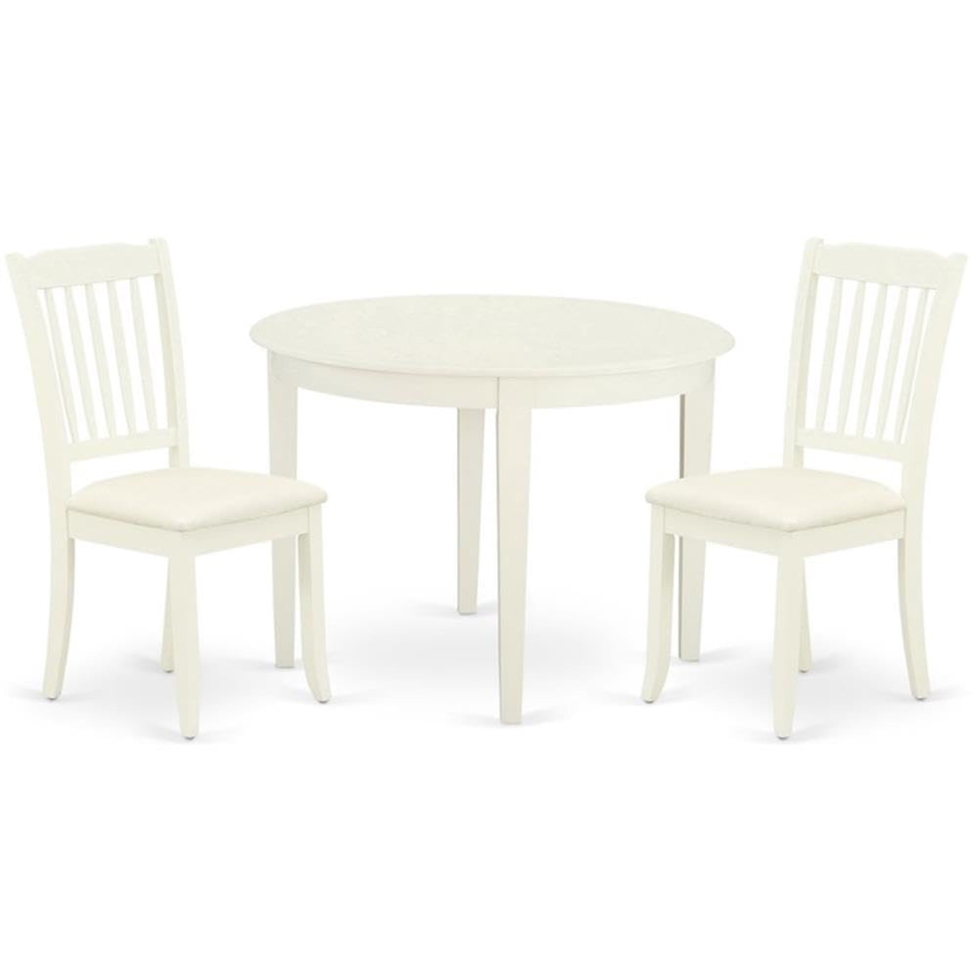 Casafoyer Boda3-Whi-C Boston 3 Piece Kitchen Table & Chairs Set Contains A Round Room Table And 2 Fabric Upholstered Dining Chairs, Linen White, 42X42 Inch