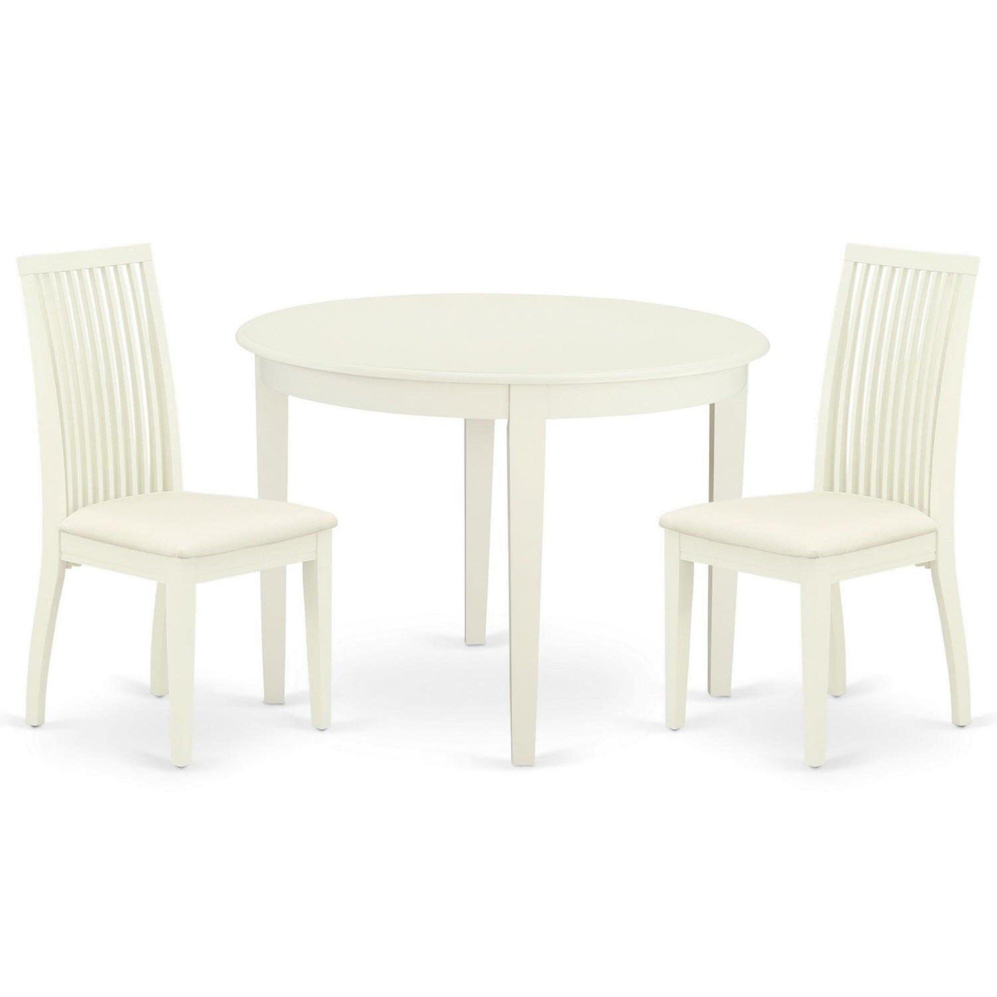 Casafoyer Boip3-Whi-C 3 Piece Kitchen Table Set For Small Spaces Contains A Round Dining Room Table And 2 Linen Fabric Upholstered Dining Chairs, 42X42 Inch, Linen White
