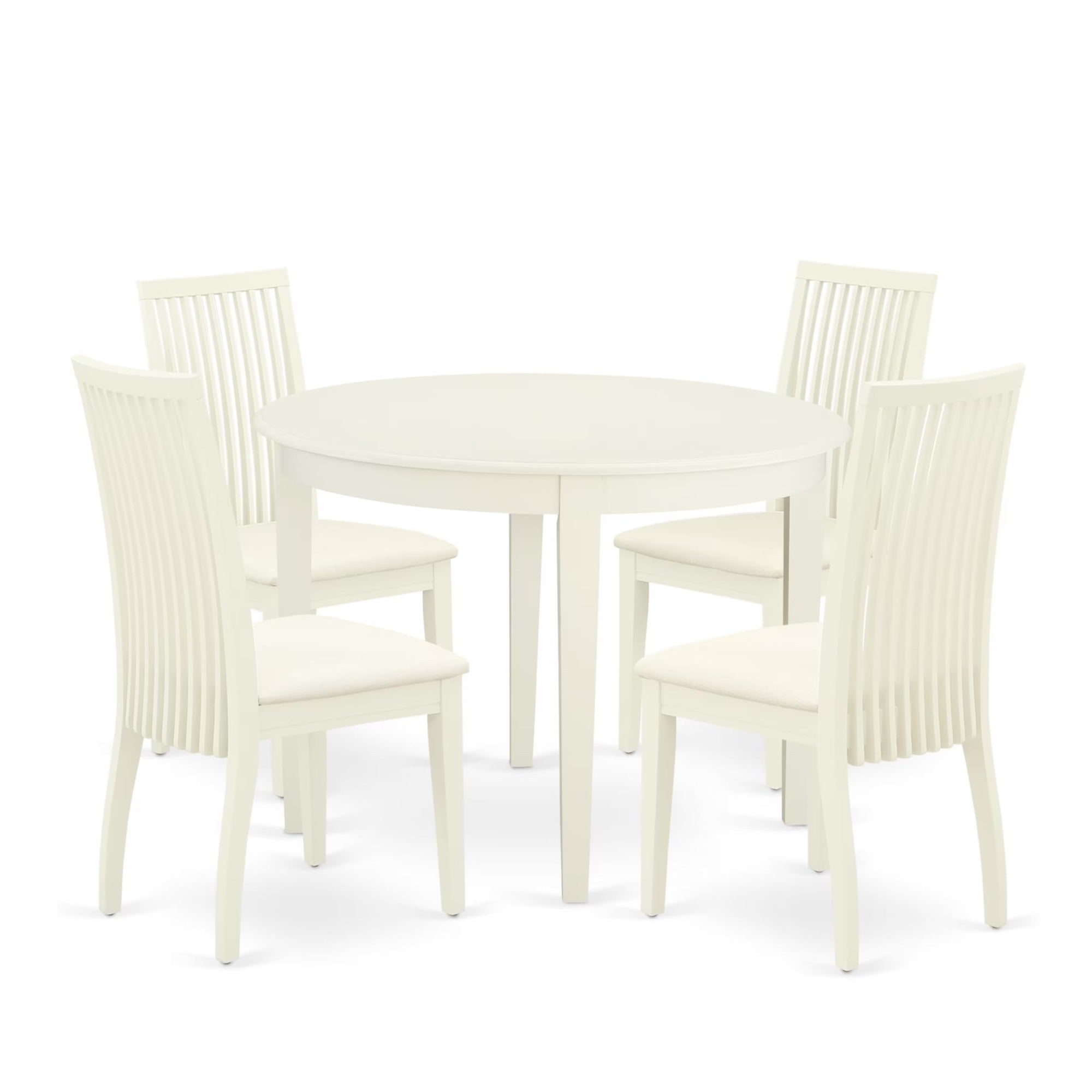 East West Furniture - Boip5-Whi-C - 5-Piece Dining Table Setthis Pretty Mid-Century 5-Piece Kitchen Table Set Is A Delightful Addition To Any Dining Area