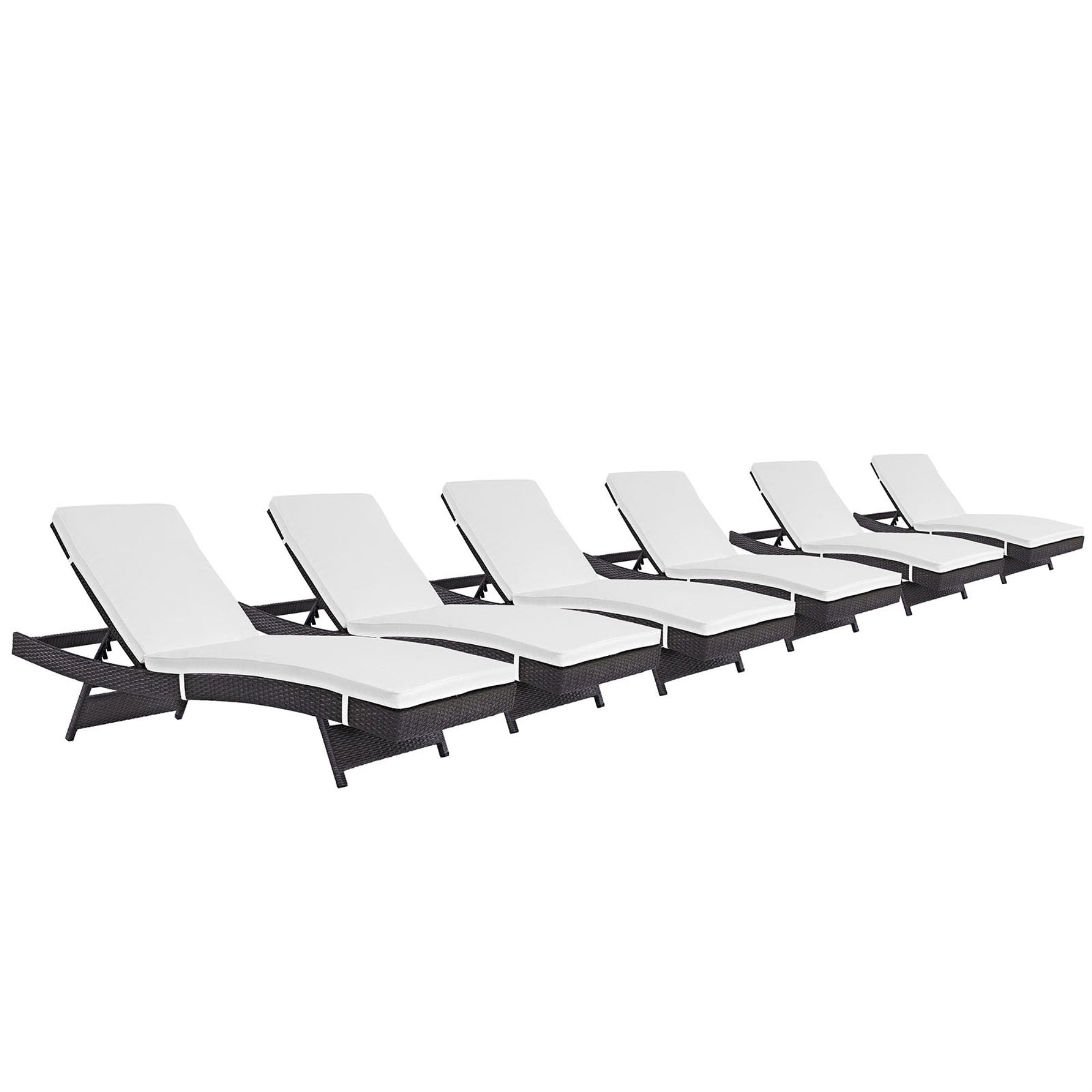 Casafoyer Convene Wicker Rattan Outdoor Patio Chaise Lounge Chairs In Espresso White - Set Of 6