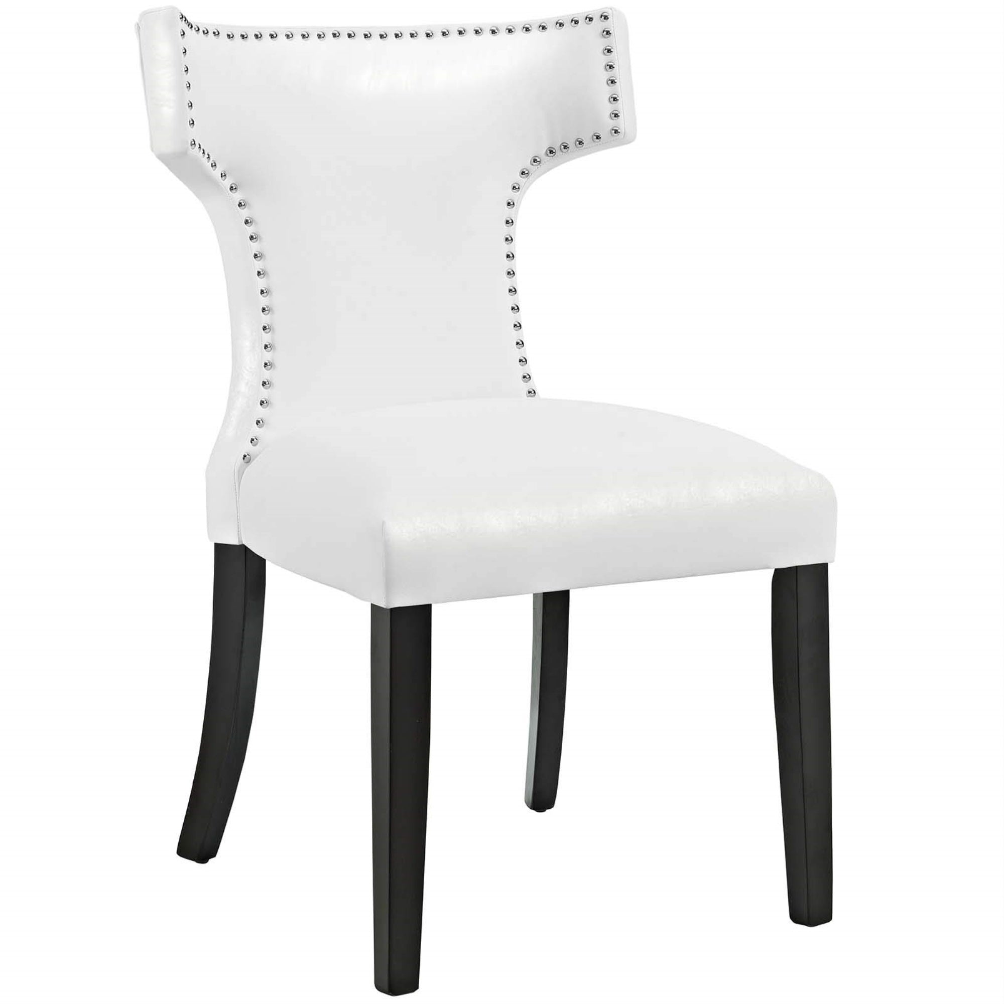 Transform Your Dining Decor With The Broadly Designed Curve Dining Side Chair. Sweeping Lines Complement A Minimalist Shape For A Chic Look Studded With Nailhead Trim. Curve Comes Generously Padded With Dense Foam Covered In Vinyl, Non-Marking Foot Caps, And Delivers Just The Right Touch Of Finesse With Tapered Wood Legs. Sporting An Hourglass Shape, Curve Works Well In A Variety Of Dining Room Arrangements.Set Includes:One - Curve Dining Chair