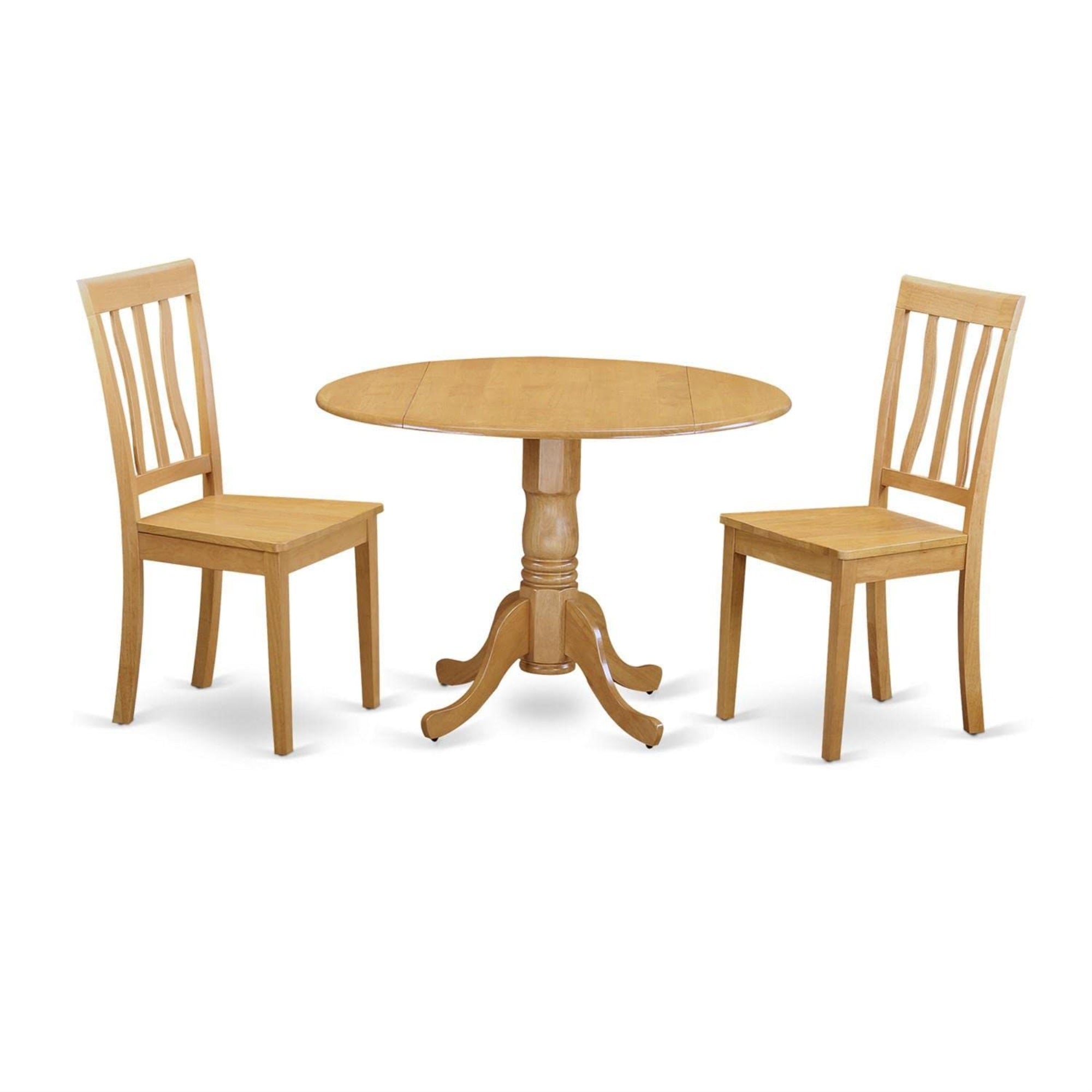 Casafoyer Dlan3-Oak-W 3 Piece Dinette Set For Small Spaces Contains A Round Dining Table With Dropleaf And 2 Dining Room Chairs, 42X42 Inch, Oak