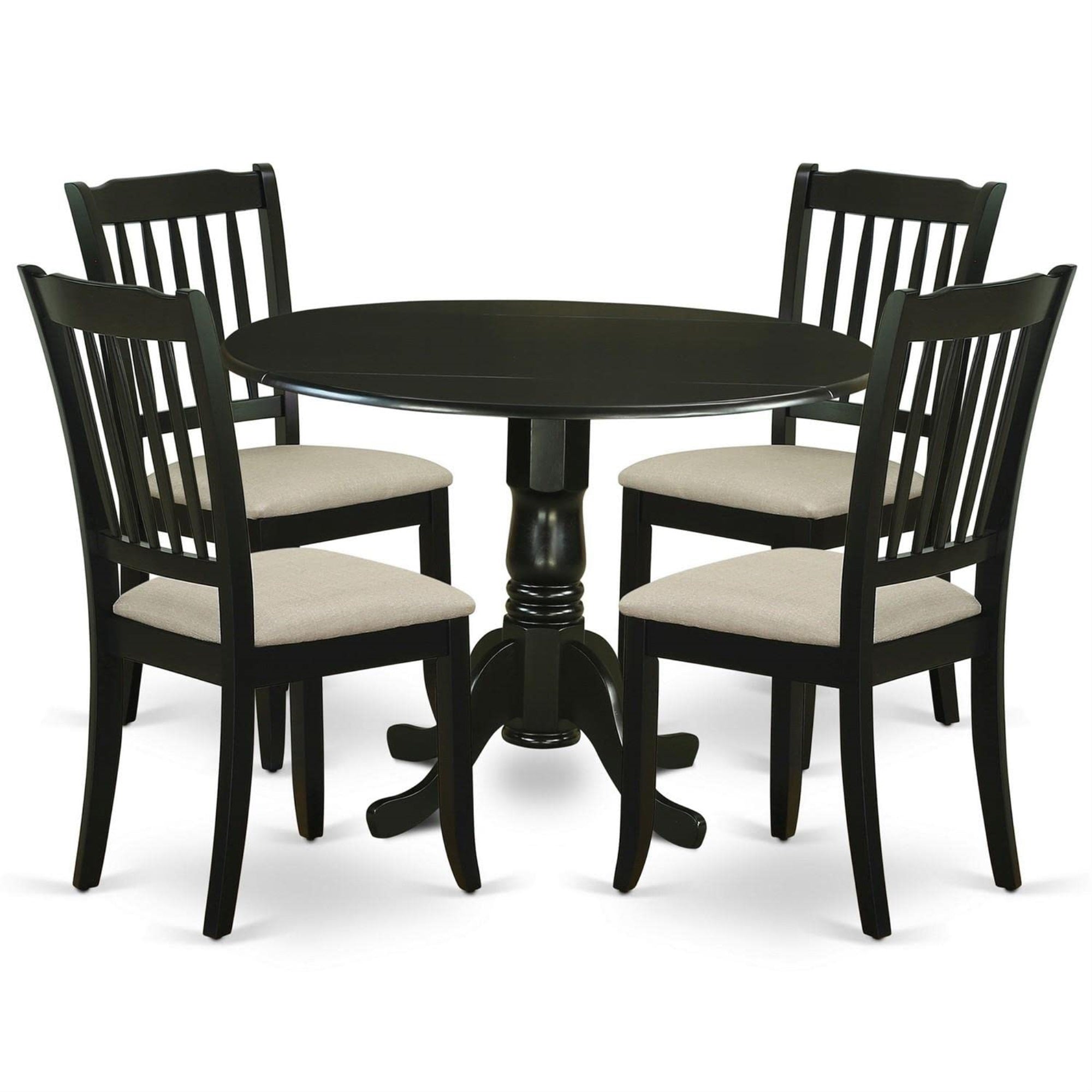 Casafoyer Dlda5-Blk-C 5 Piece Dining Table Set For 4 Includes A Round Kitchen Table With Dropleaf And 4 Linen Fabric Upholstered Dinette Chairs, 42X42 Inch, Black