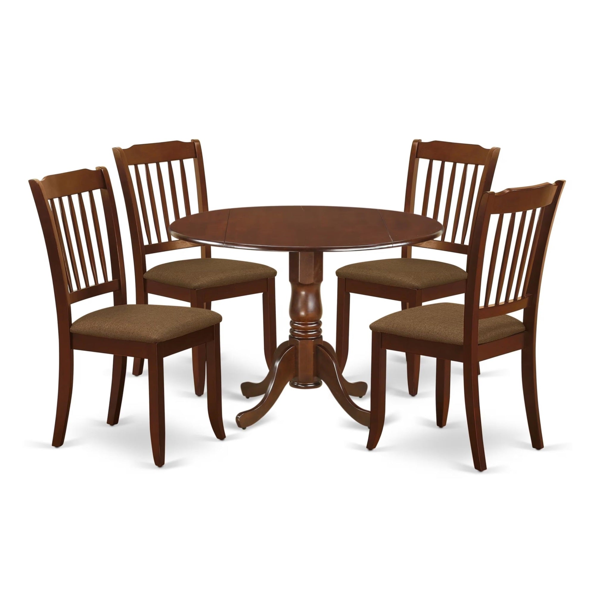 Casafoyer Dlda5-Mah-C Dublin 5 Piece Kitchen Set For 4 Includes A Round Room Table With Dropleaf And 4 Linen Fabric Upholstered Dining Chairs, 42X42 Inch, Mahogany