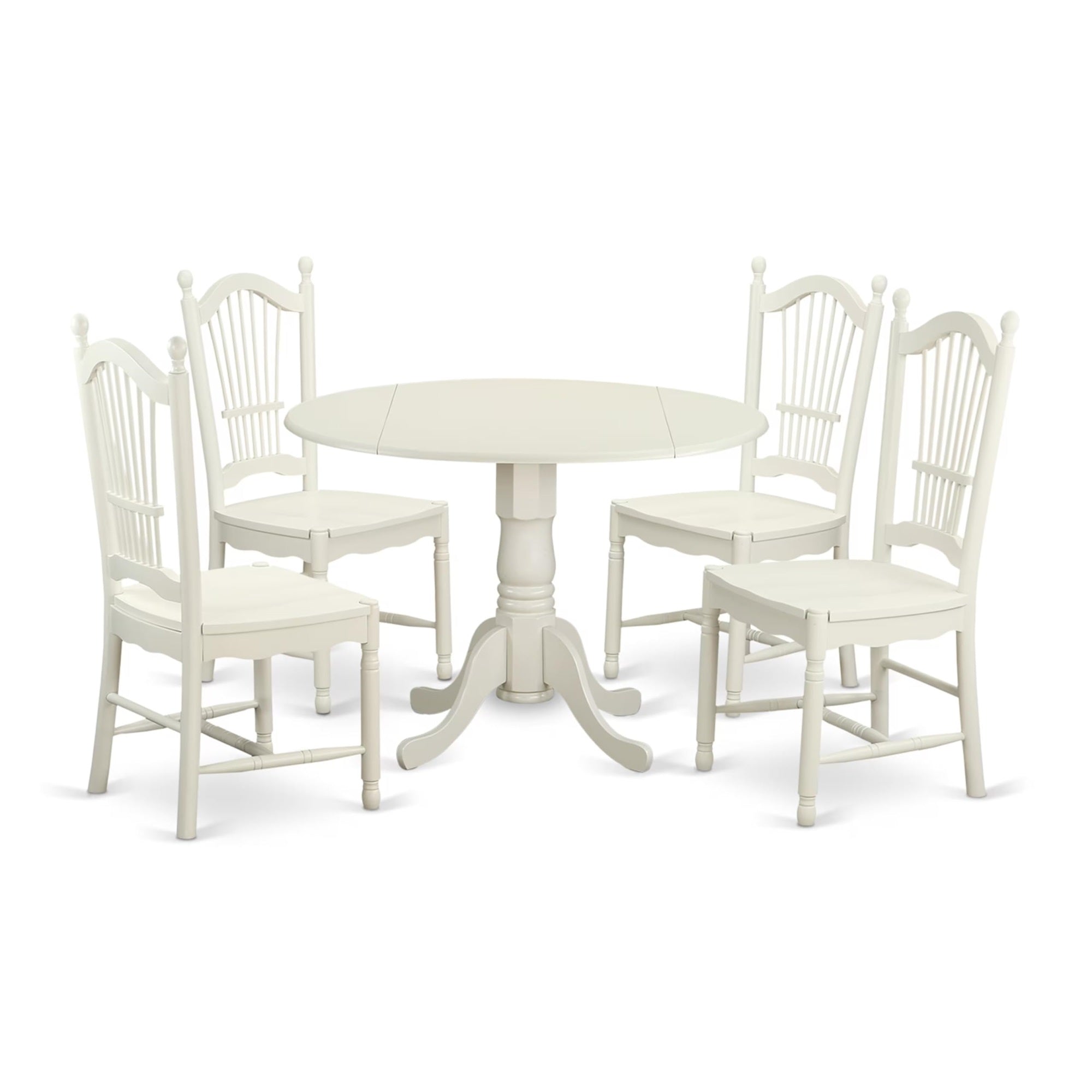 Casafoyer Dldo5-Whi-W Dublin 5 Piece Room Set Includes A Round Kitchen Table With Dropleaf And 4 Dining Chairs, 42X42 Inch, Linen White