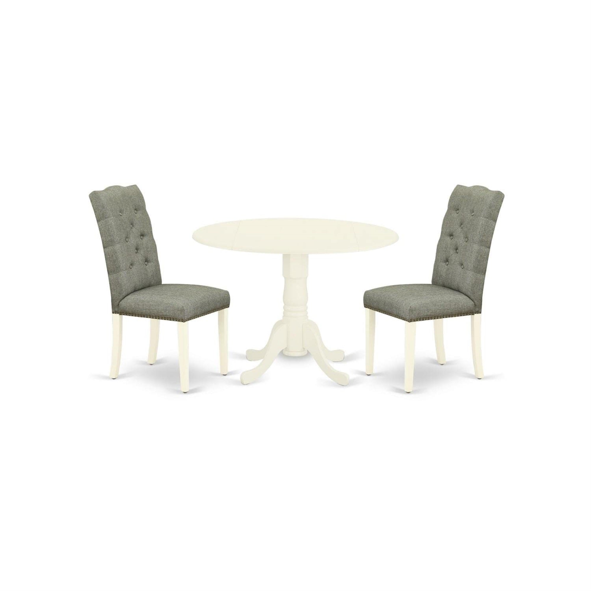 Casafoyer Dlel3-Whi-07 3 Piece Modern Dining Table Set Contains A Round Wooden Table With Dropleaf And 2 Gray Linen Fabric Parson Dining Room Chairs, 42X42 Inch, Linen White