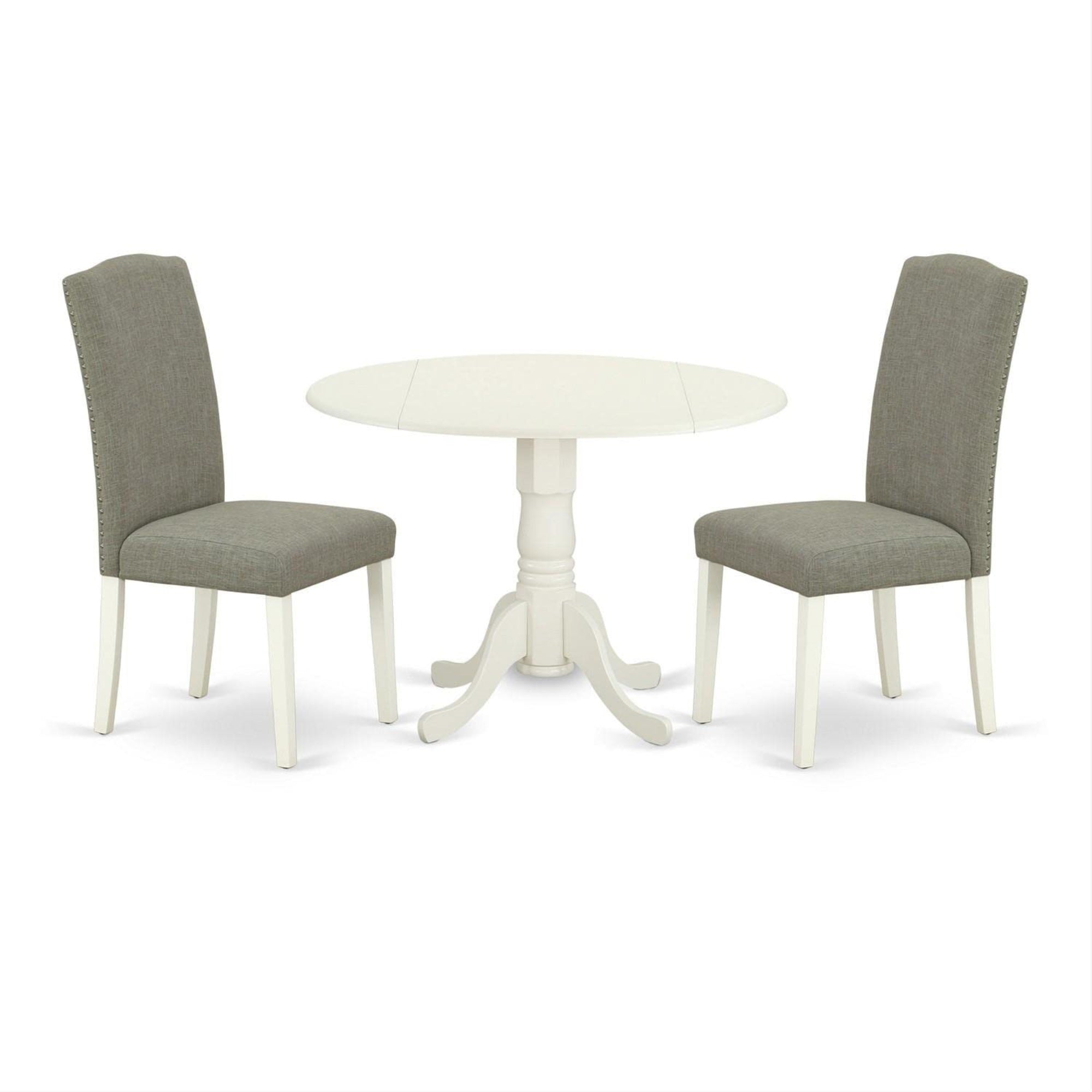 Casafoyer Dublin 3 Piece Modern Set Contains A Round Wooden Table With Dropleaf And 2 Dark Shitake Linen Fabric Parson Dining Chairs, 42X42 Inch, Dlen3-Lwh-06