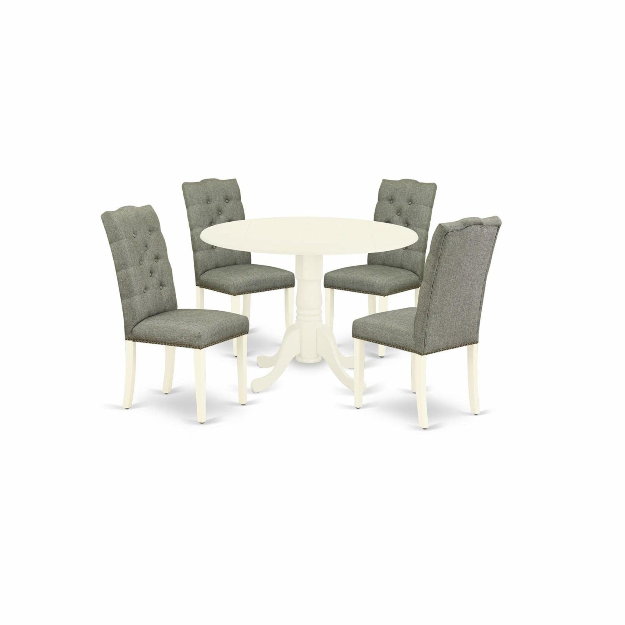 Casafoyer Dublin 5 Piece Room Set Includes A Round Dining Table With Dropleaf And 4 Gray Fabric Upholstered Parson Chairs, Dlel5-Whi-07, Linen White
