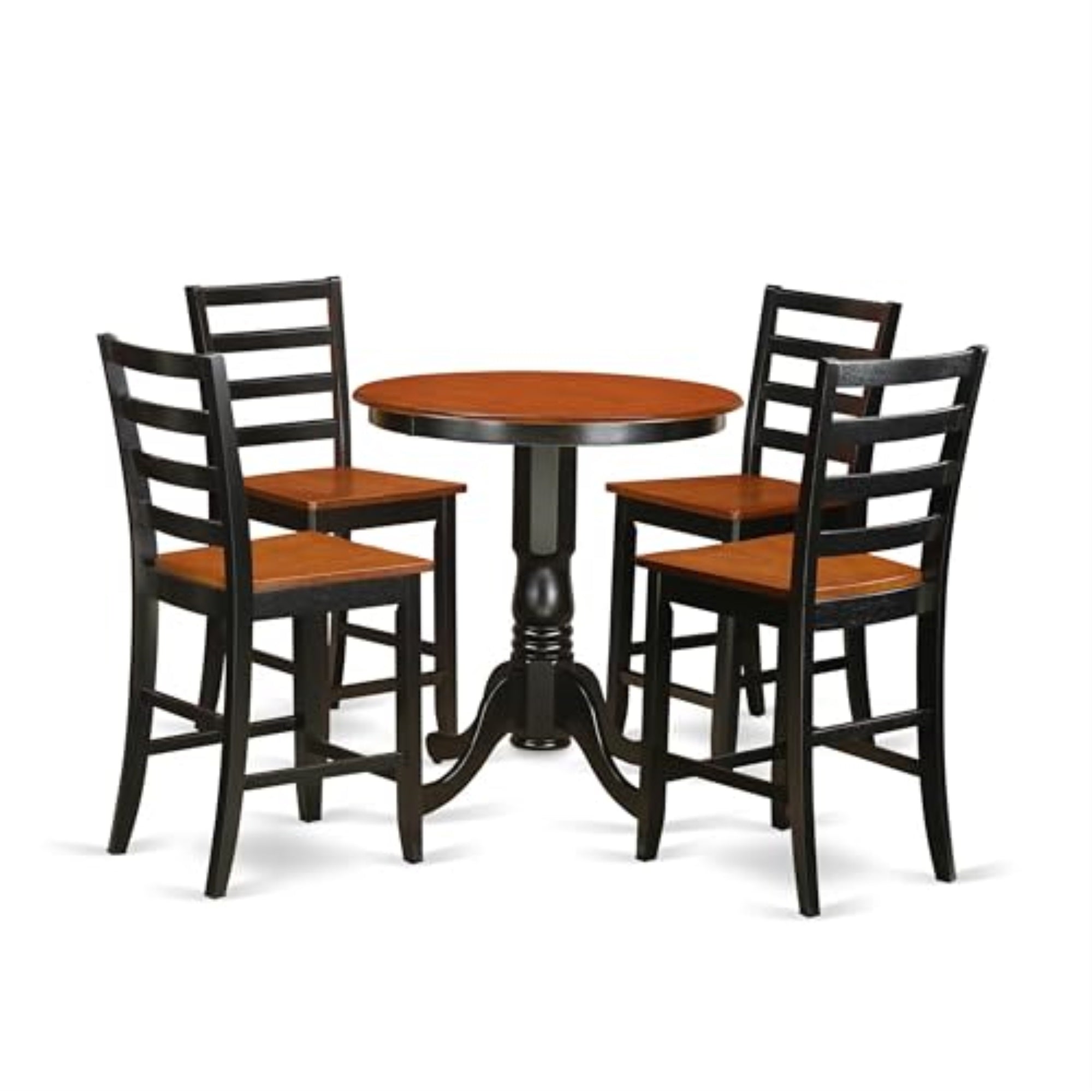 Casafoyer Edfa5-Blk-W 5 Piece Counter Height Dining Table Set Includes A Round Kitchen Table With Pedestal And 4 Dining Chairs, 30X30 Inch, Black & Cherry