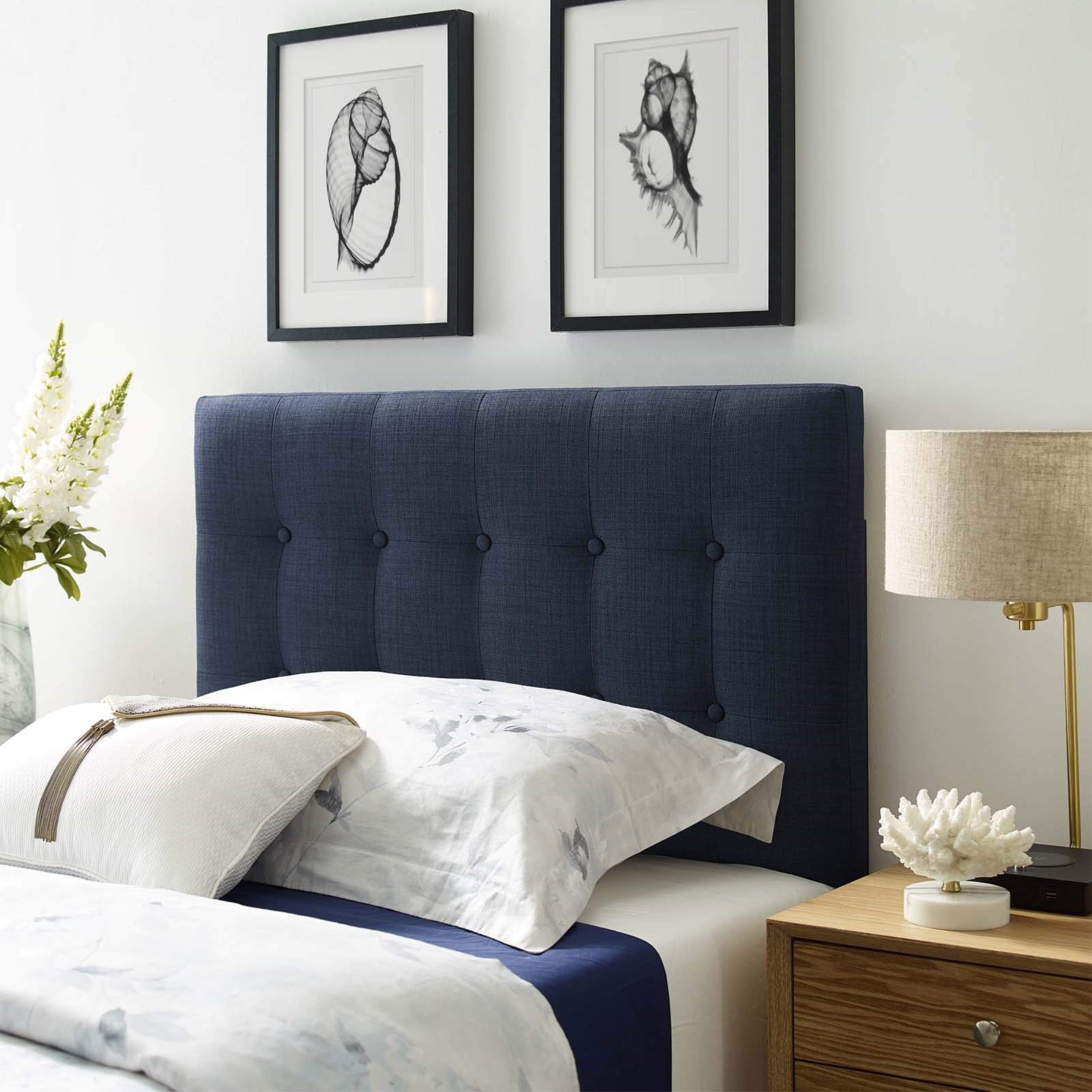 Casafoyer Emily Tufted Button Linen Fabric Upholstered Twin Headboard In Navy