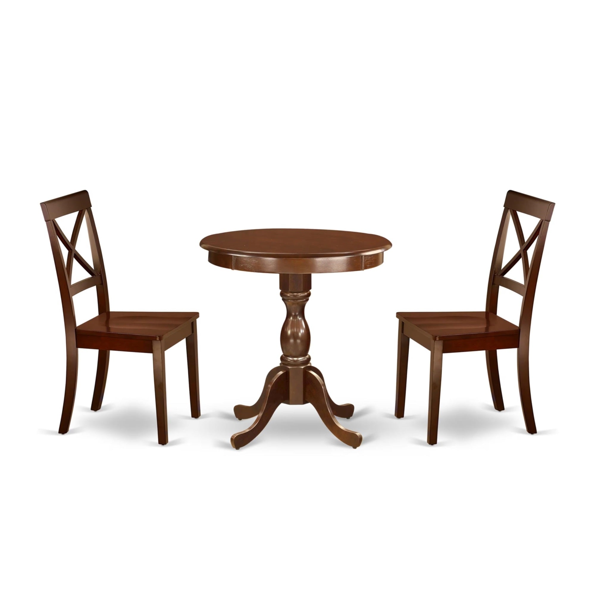 Esbo3-Mah-W East West Furniture - Esbo3-Mah-W - 3-Pc Modern Dining Table Set - 2 Dining Room Chairs And 1 Dining Table (Mahogany Finish), East West Furniture - Esbo3-Mah-W - 3-Pc Modern Dining Table Setthis Modern Dining Set Includes 2 Wood Kitchen Chairs And 1 Wooden Dining Table. This Wood Dining Table Has A Round Table Top And Pedestal Legs. The Solid Wood Frame And Back Ensure That These Modern Wood Chairs Sturdiness And Offers Decent Support To Your Back, In Addition To Their Ideal Size These Urban Style Chairs Are Trouble Free To Assemble And Easy To Rearrange. These Simple But Charming Wood Chairs Will Add Ambiance And Style To Your Dining Room. Give Your Home A Pop Of Chic Style With This Must Have Kitchen Dining Set. A Contemporary Twist On A Classic Design, This Eye-Catching Dining Room Set Design Will Liven Up Any Timeless Appeal. Just By Switching Out Your Kitchen Chairs And Wood Dining Table, You Can Effortlessly Refresh Your Dining Space. This Kitchen Dining Room Set Is Very Easy To Assemble. You Only Need Around 30 Minutes To Build This Modern Dining Table Set. This Modern Dining Set Comes With All The Necessary Hardware To Assemble This Dining Room Set. These Wooden Dining Room Chairs Are Easy To Carry Or Move Around. Enjoy With East West Furniture!Features:Material: Woodseat Material: Woodwood Chairs Color: Mahoganywood Dining Table Color: Mahoganydining Table Dimensions Are: Length 30; Width 30; Height 36.Wood Chairs Dimensions Are: Length 21; Width 18; Height 38.Included In The Package: 1 Beautiful Dining Table And 2 Beautiful Wood Chairs.