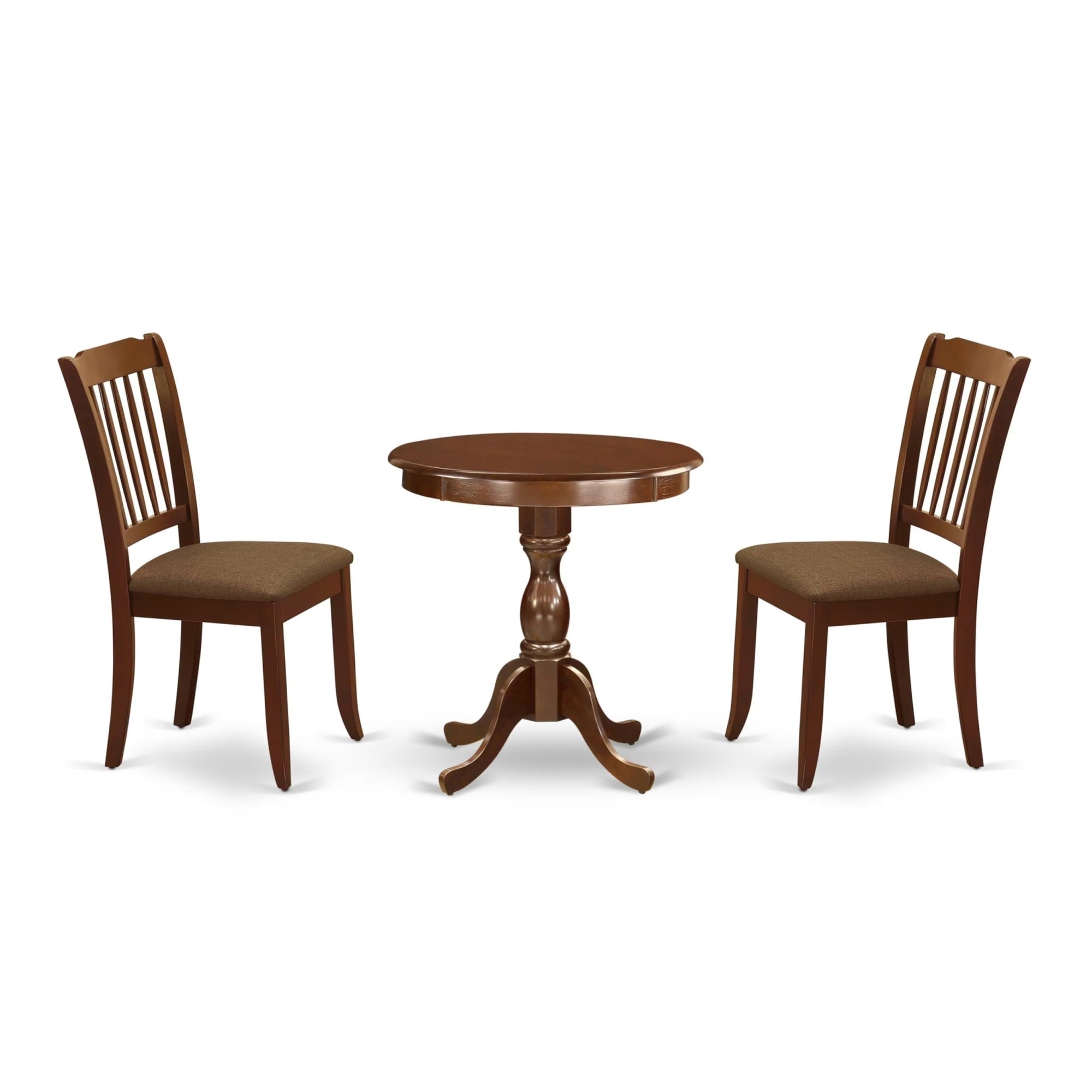 Casafoyer Esda3-Mah-C 3 Piece Kitchen Table Set For Small Spaces Contains A Round Dining Table With Pedestal And 2 Linen Fabric Dining Room Chairs, 30X30 Inch, Mahogany