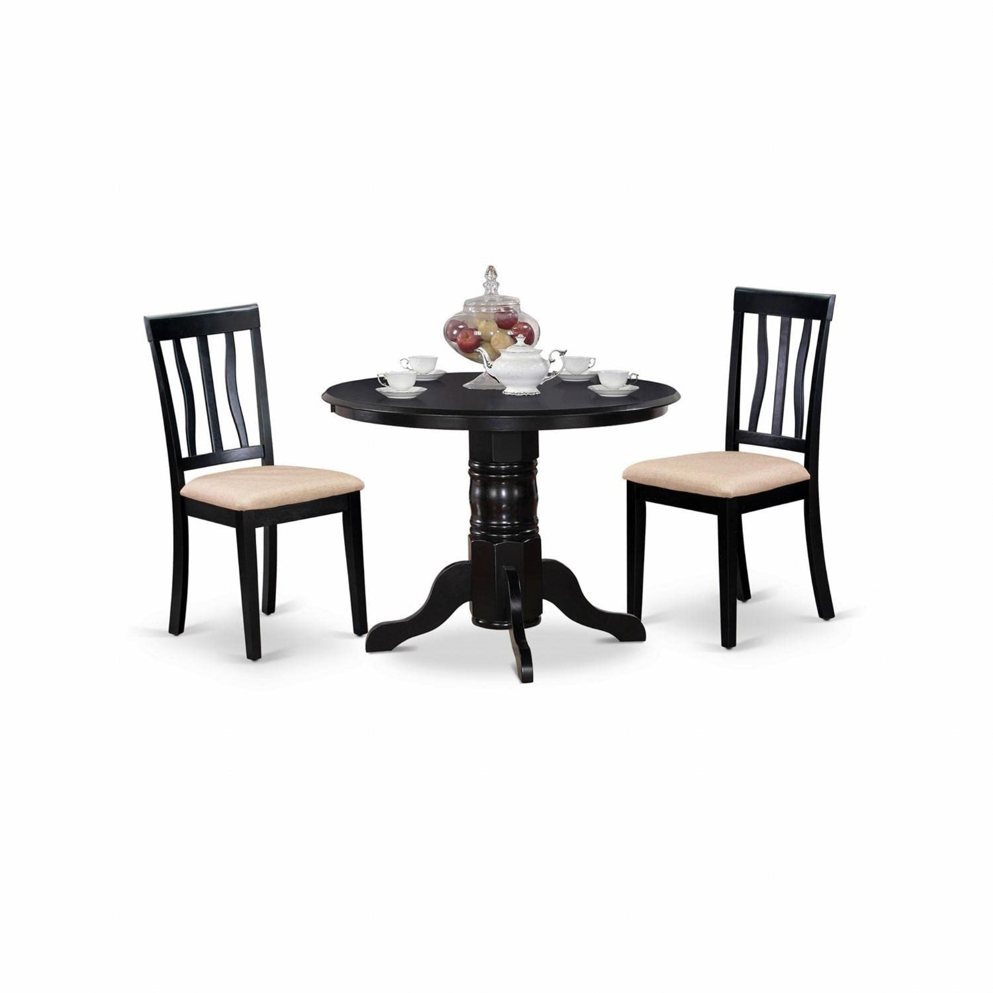 Casafoyer Shan3-Blk-C 3 Piece Dining Set Contains A Round Kitchen Table With Pedestal And 2 Linen Fabric Dining Room Chairs, 42X42 Inch, Black
