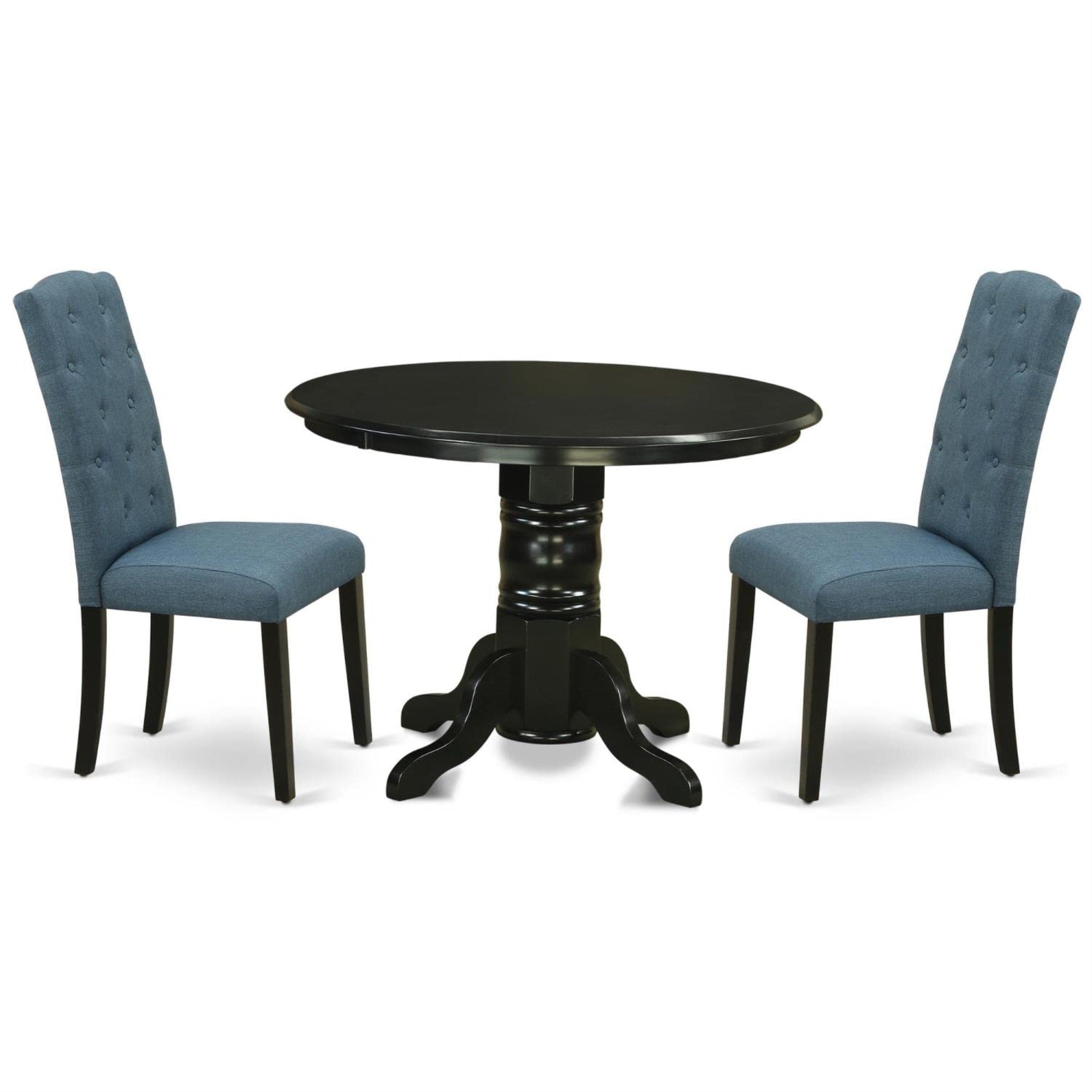 Casafoyer Shce3-Blk-21 3 Piece Modern Set Contains A Round Kitchen Table With Pedestal And 2 Mineral Blue Linen Fabric Parson Dining Chairs, 42X42 Inch