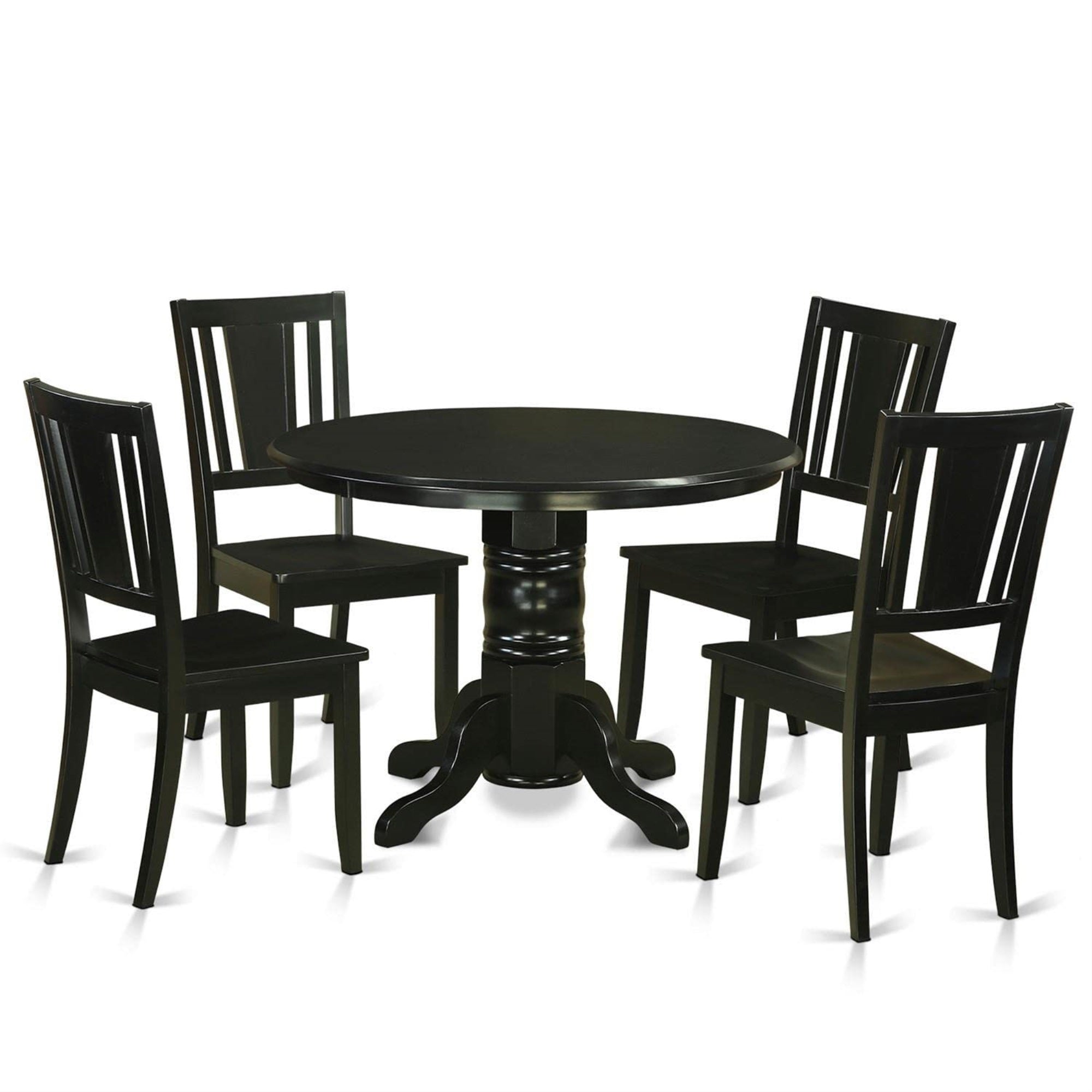 Casafoyer Shdu5-Blk-W 5 Piece Dining Set For 4 Includes A Round Kitchen Table With Pedestal And 4 Dinette Chairs, 42X42 Inch