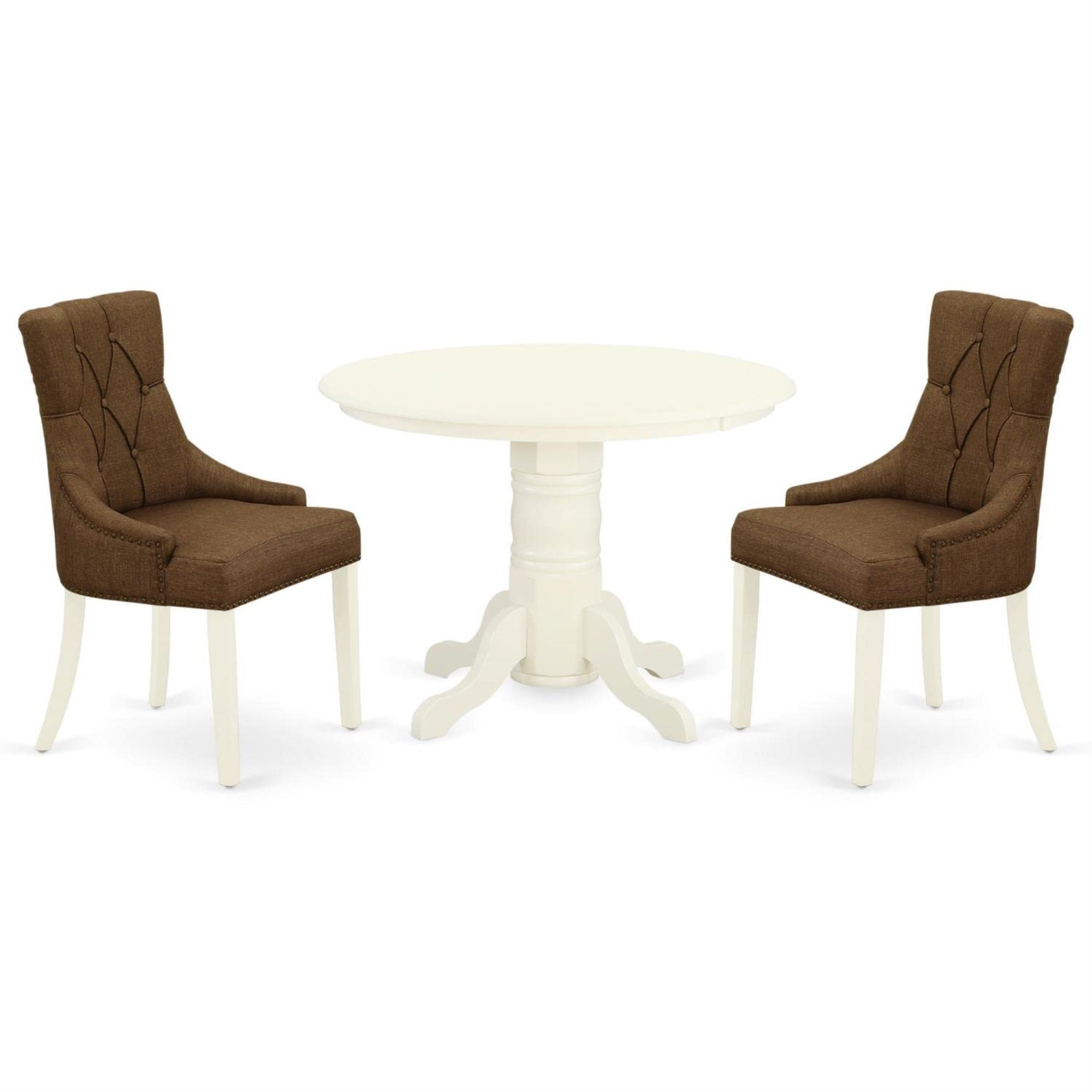 Casafoyer Shfr3-Whi-18 3 Piece Set Contains A Round Dining Room Table With Pedestal And 2 Brown Linen Fabric Parsons Dinette Chairs, 42X42 Inch