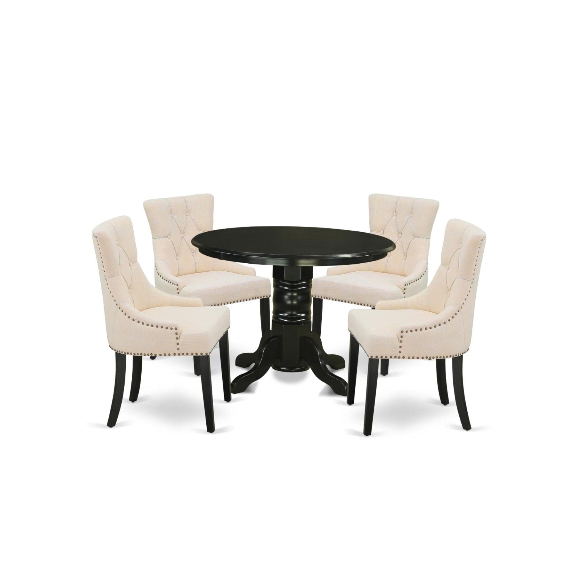 Casafoyer Shfr5-Blk-02 5 Piece Dining Room Set Includes A Round Kitchen Table With Pedestal And 4 Light Beige Linen Fabric Upholstered Chairs, 42X42 Inch