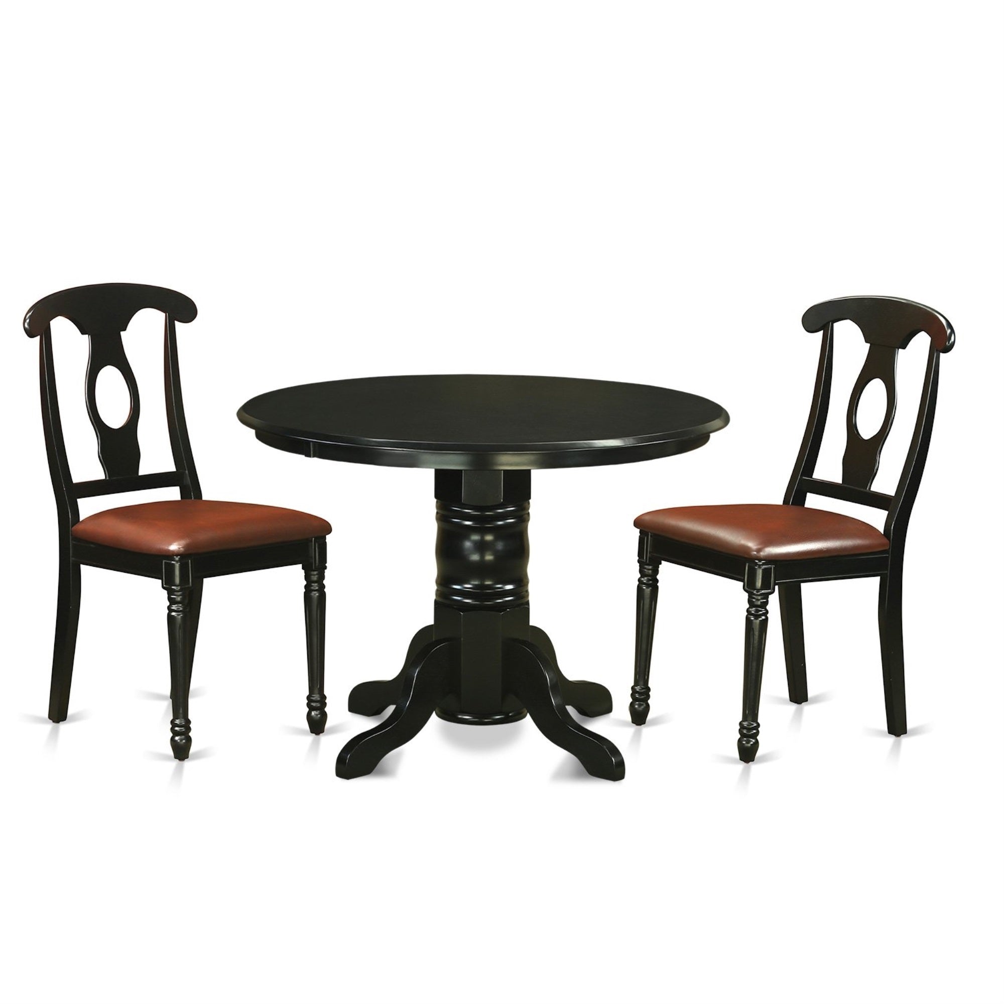 Casafoyer Shke3-Blk-Lc 3 Piece Kitchen Table & Chairs Set Contains A Round Dining Room Table With Pedestal And 2 Faux Leather Dining Room Chairs, 42X42 Inch, Black