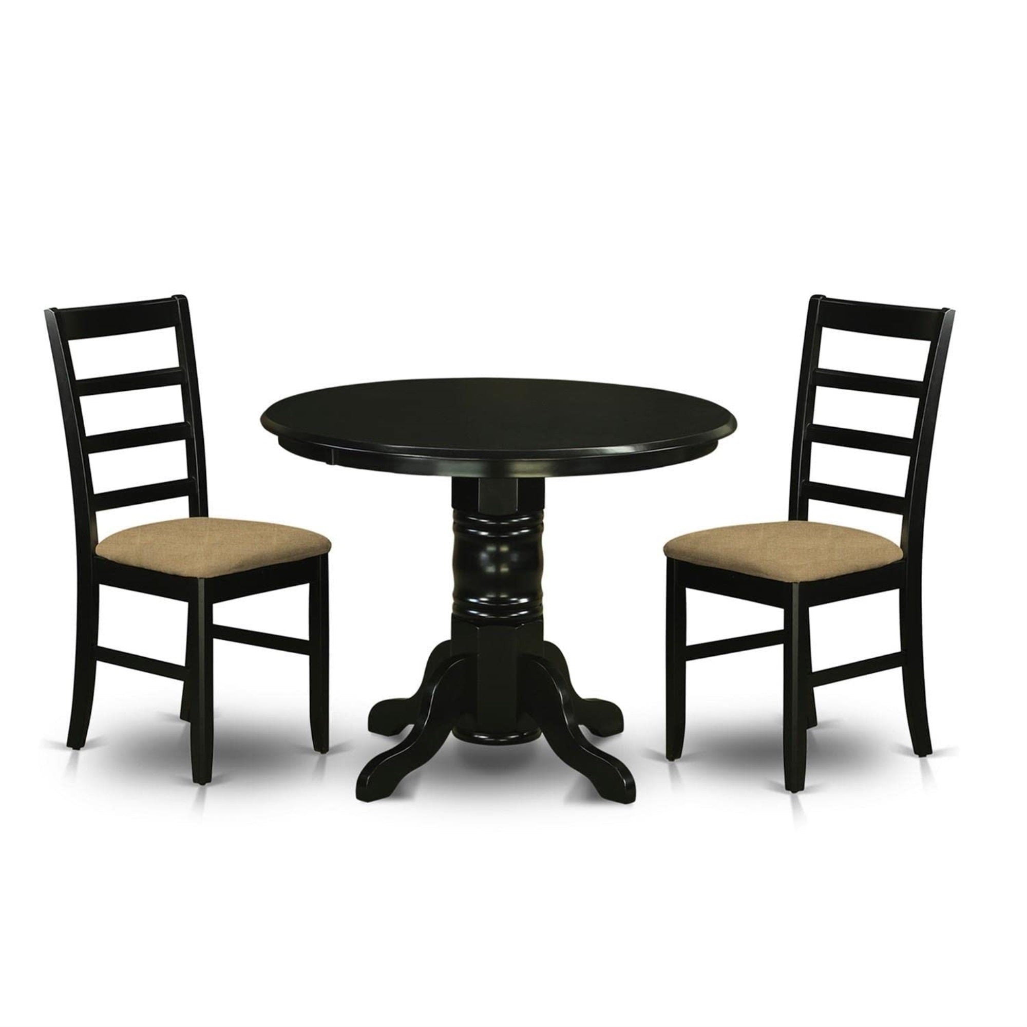 Casafoyer Shpf3-Blk-C 3 Piece Dining Table Set For Small Spaces Contains A Round Kitchen Table With Pedestal And 2 Linen Fabric Kitchen Dining Chairs, 42X42 Inch, Black