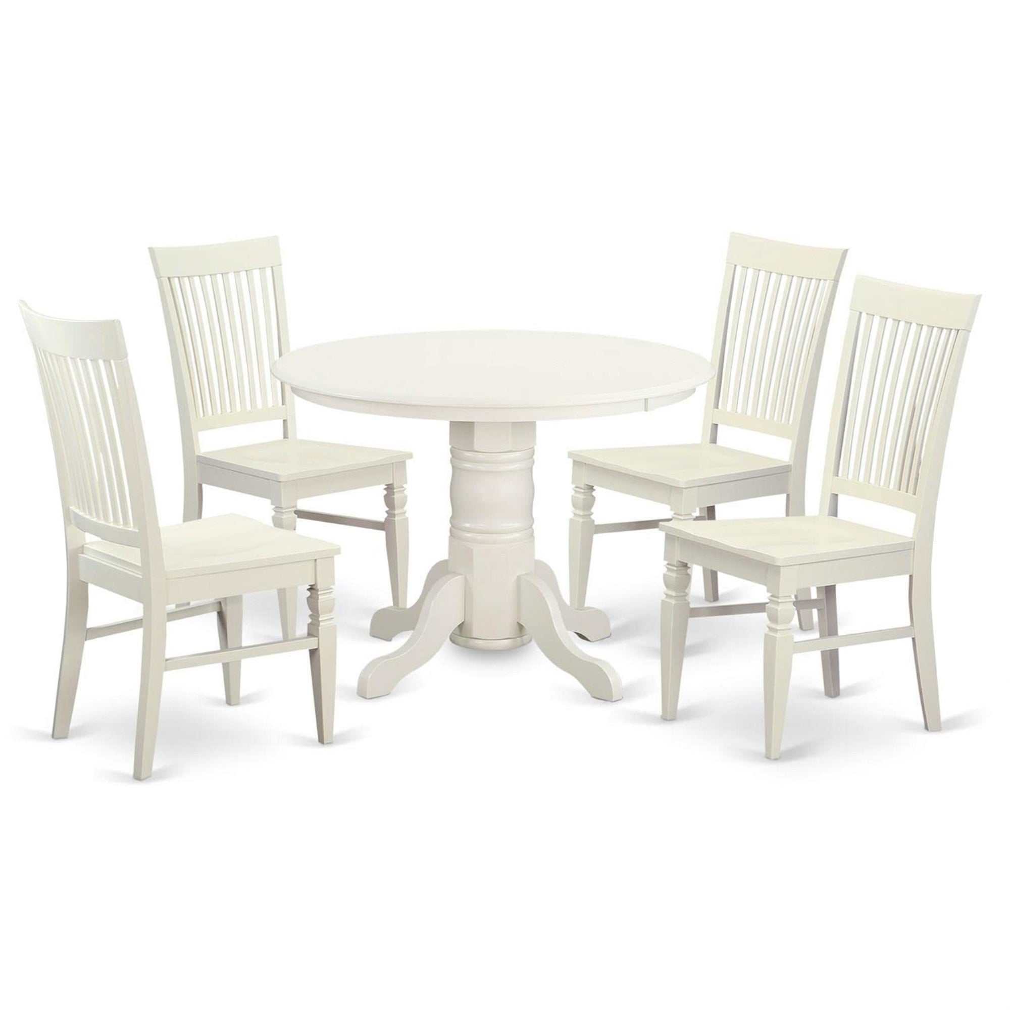 Casafoyer Shwe5-Whi-W 5 Piece Modern Dining Table Set Includes A Round Kitchen Table With Pedestal And 4 Dining Chairs, 42X42 Inch, Linen White