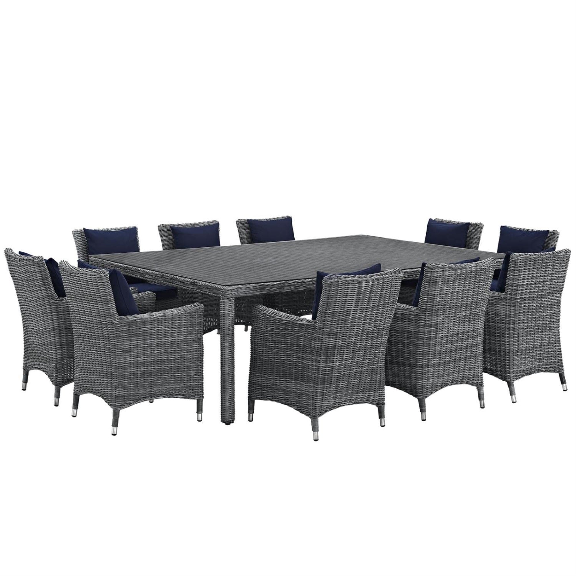 Casafoyer Summon Wicker Rattan Aluminum Outdoor Patio 11-Piece 91' Dining Table And Dining Armchairs With Sunbrella Fabric Cushions In Canvas Navy
