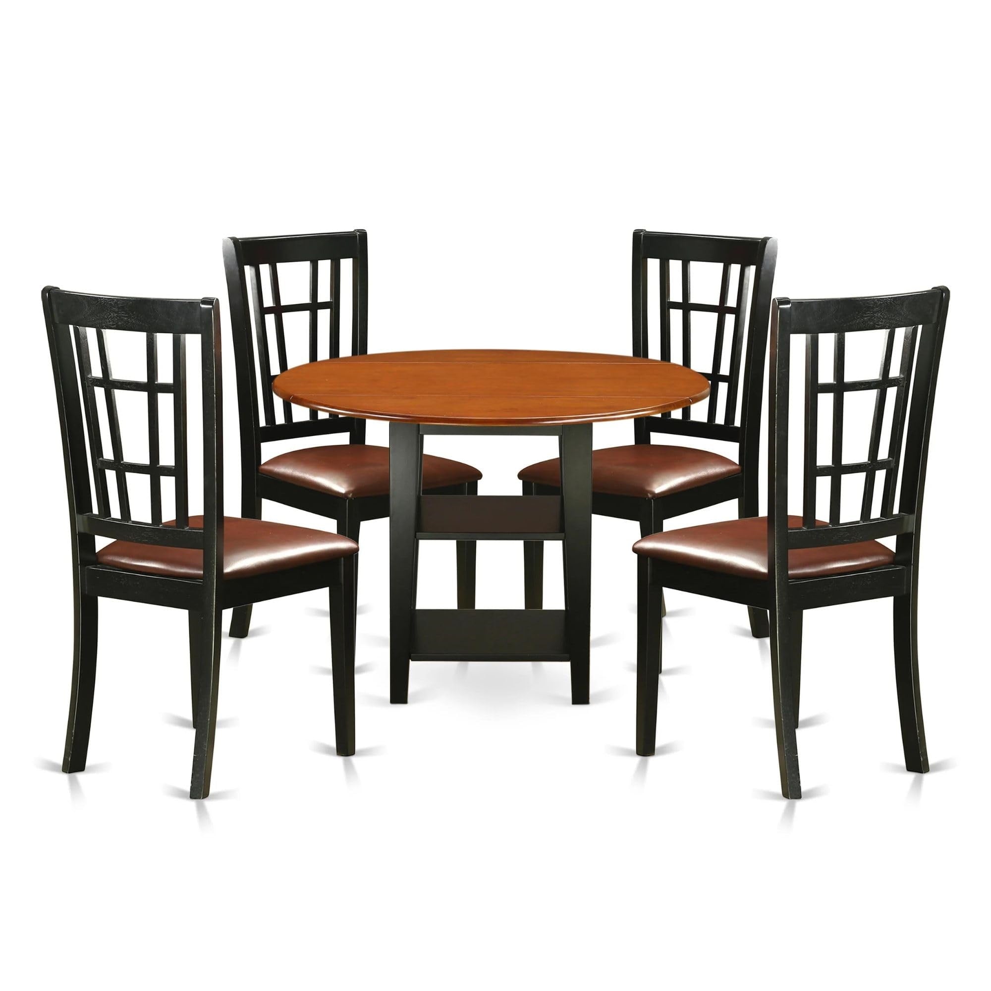 Suni5-Bch-Lc Suni5-Bch-Lc 5 Piece Sudbury Set With One Round Dinette Table And 4 Dinette Chairs With Faux Leather Seat In A Rich Black And Cherry Finish., Create That Everlasting Atmosphere For The Dining Room With This Essential 5 Piece Dining Set, Perfect For Weekday Meals And Family Gatherings Alike. Soak In The Greatness Of This Kitchen Set Thanks To The Quality Of Wood Used And Overall Aesthetic It Provides To Pretty Much Any Room It Is Placed In. The Table Sits On 4 Solid Legs And Features 2 Shelves Below The Table Top, Allowing You To Place Small To Medium Objects Securely Under The Table. We Guarantee The Quality And Safety When You Use This Product, So You Can Be Sure That Every Use Is Up To Par. This Particular Set Is Finished In A Grand Black & Cherry With Fauc Leather Seats.