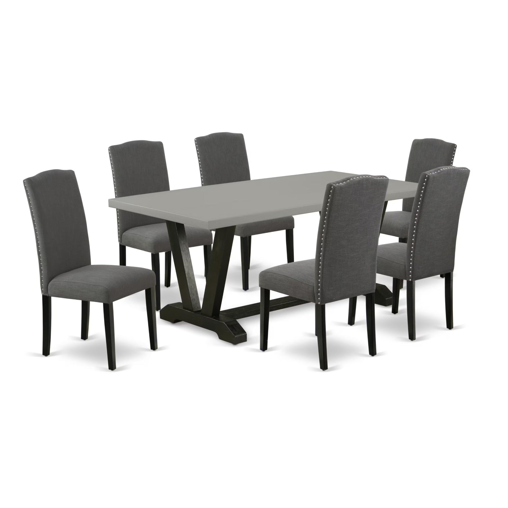 Casafoyer V-Style 7 Piece Kitchen Set Consist Of A Rectangle Table With V-Legs And 6 Dark Gotham Linen Fabric Parson Dining Chairs, 40X72 Inch, Multi-Color