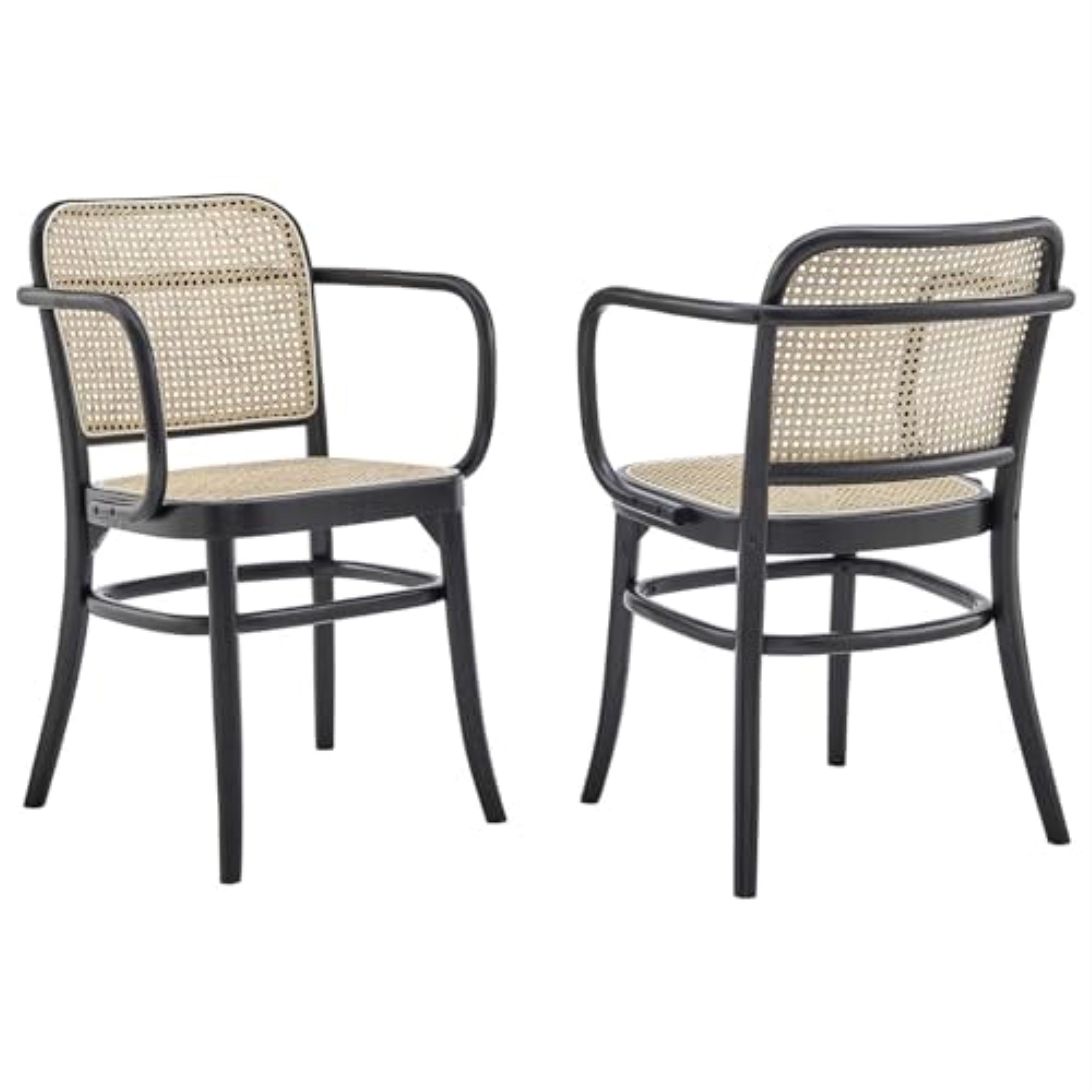 Casafoyer Winona Elm Wood Cane Rattan Seat, Dining Chair - Set Of 2, Black