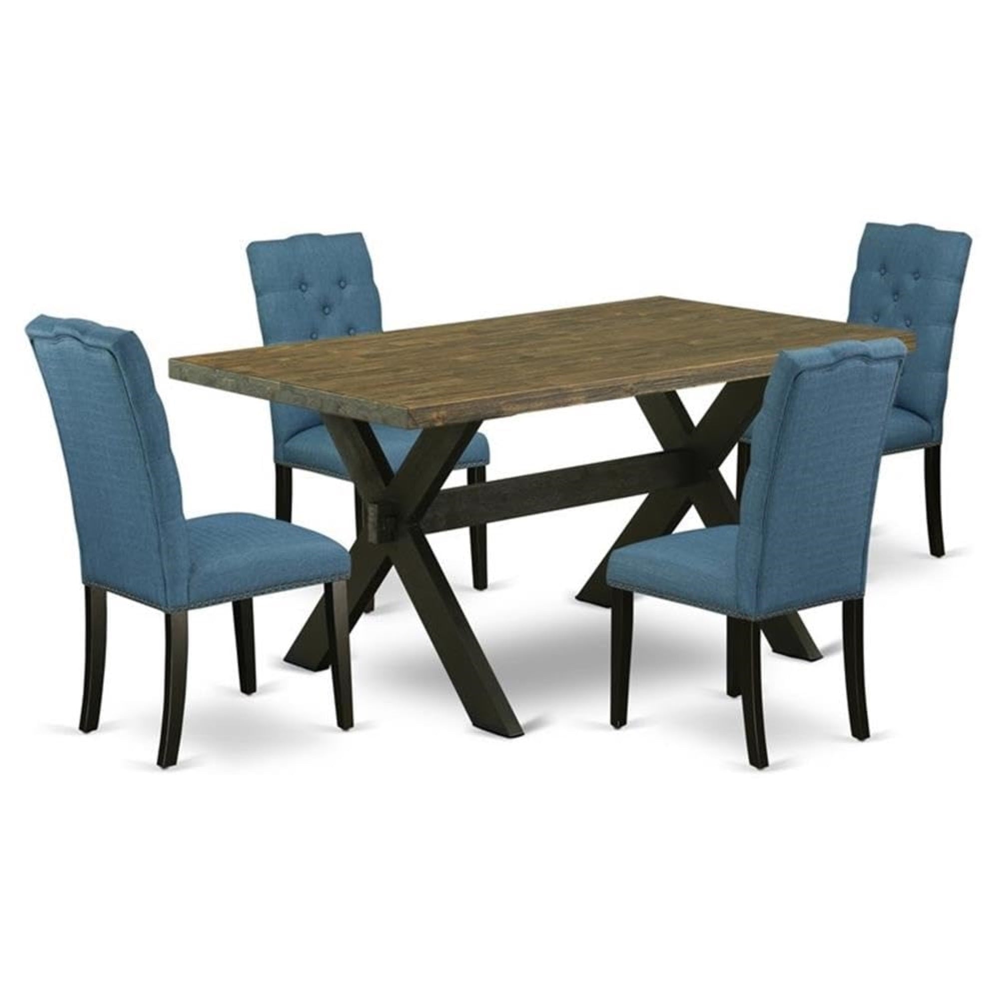 Casafoyer X676El121-5 5 Piece Dining Room Furniture Set Includes A Rectangle Dining Table With X-Legs And 4 Blue Linen Fabric Parsons Chairs, 36X60 Inch, Multi-Color