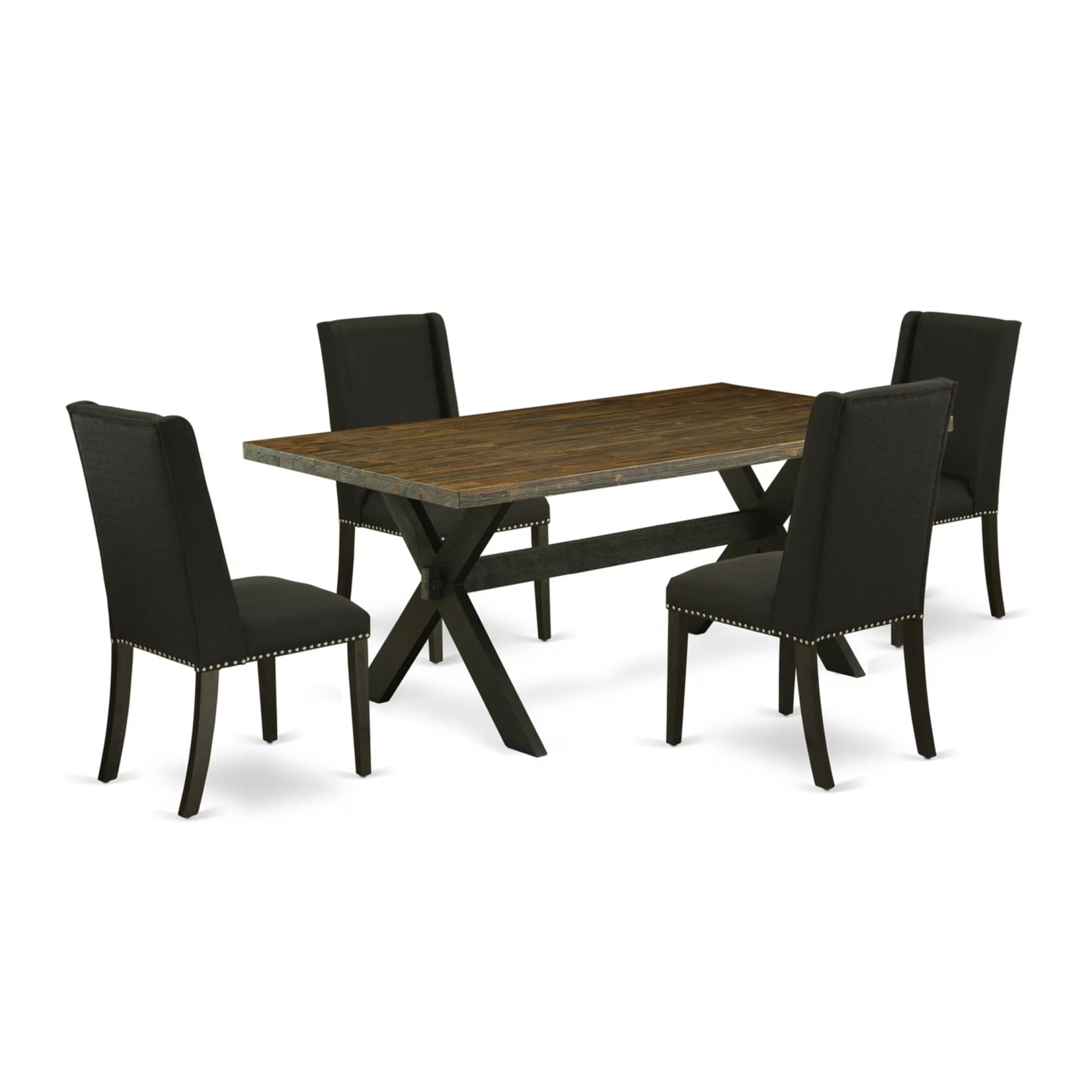 Casafoyer X677Fl624-5 5 Piece Dining Room Furniture Set Includes A Rectangle Dining Table With X-Legs And 4 Black Linen Fabric Parsons Chairs, 40X72 Inch, Multi-Color
