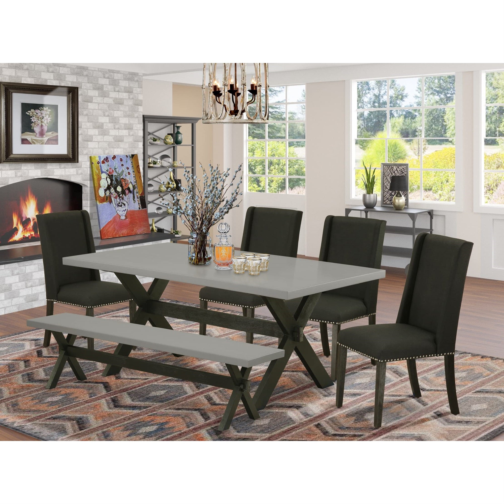 Casafoyer X697Fl624-6 6 Piece Dinette Set Contains A Rectangle Dining Table With X-Legs And 4 Black Linen Fabric Parson Chairs With A Bench, 40X72 Inch, Multi-Color