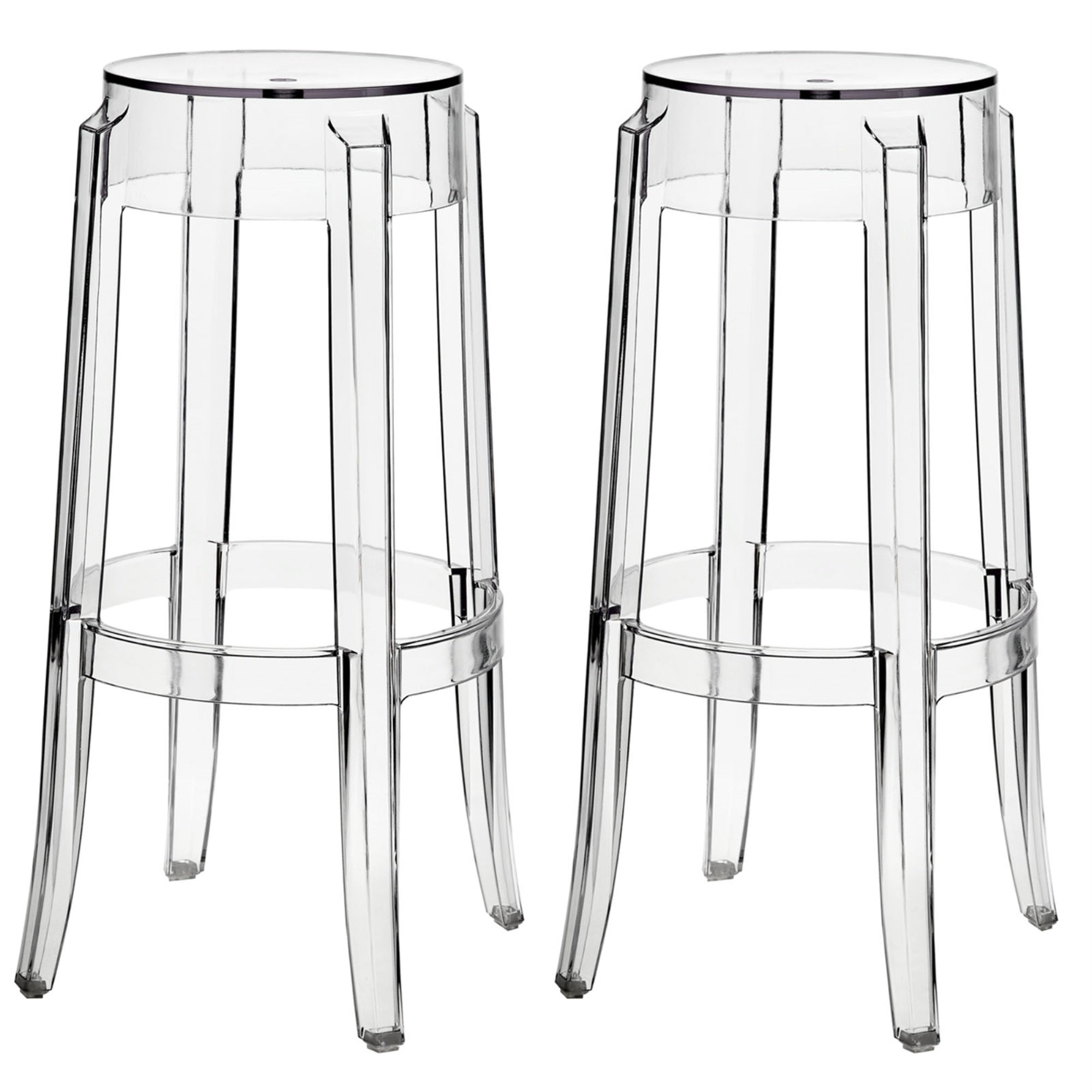 Casper Bar Stools - Transparent Acrylic, Captivating Silhouette, Non-Marking Feet, Set Of 2 - Enhance Any Color Scheme