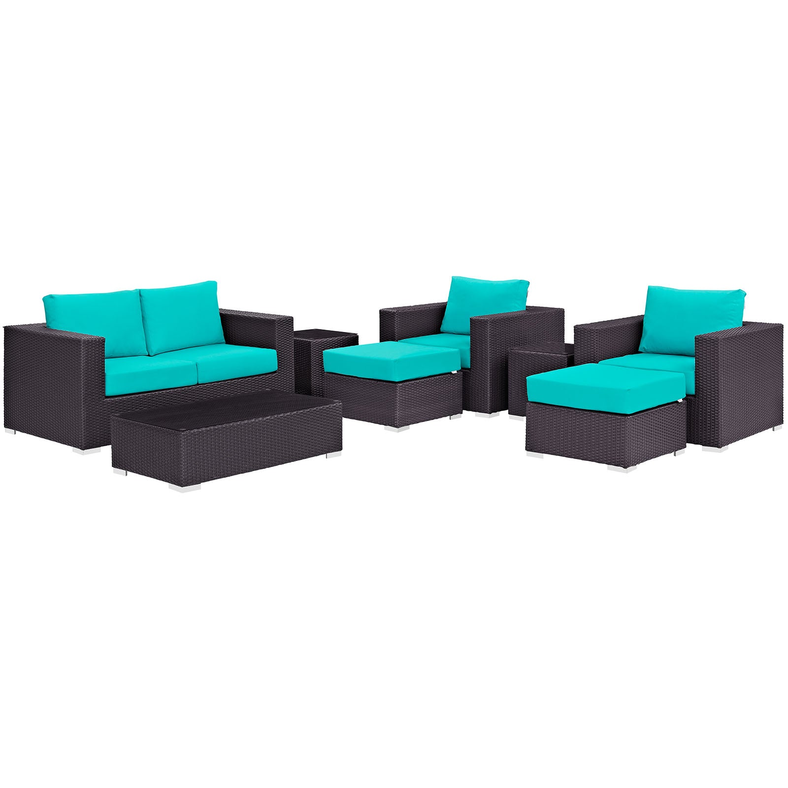 Convene 8 Piece Outdoor Patio Sofa Set - Espresso Turquoise