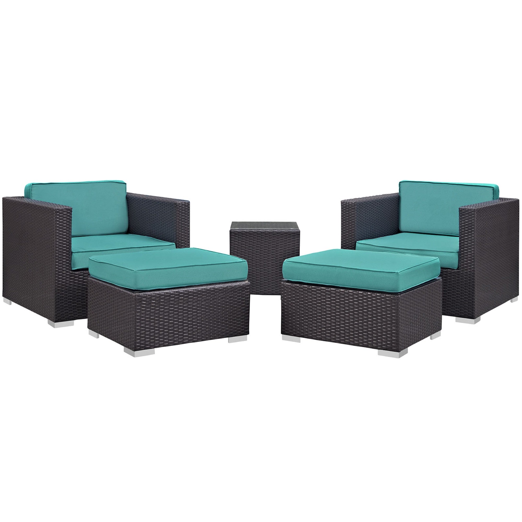 Experience Different Levels Of Sensitivity With The Convene Outdoor Sectional Series. Crafted With A Synthetic Rattan Weave And A Powder-Coated Aluminum Frame, The Convene Patio Lounge Armchair And Ottoman Set Is A Versatile Outdoor Collection That Adapts To Your Spontaneous Needs. Equipped With All-Weather Fabric Cushions, This Deck Chair Leaves A Lasting Impression On Your Loved Ones While Elevating Your Patio, Backyard, Or Poolside Gathering. This Edition Of The Series Is The Outdoor Patio Sectional Sofa Set, Which Includes One Convene Outdoor Patio Side Table Section, Two Convene Outdoor Patio Armchair Sections, And Two Convene Outdoor Patio Ottoman Sections.