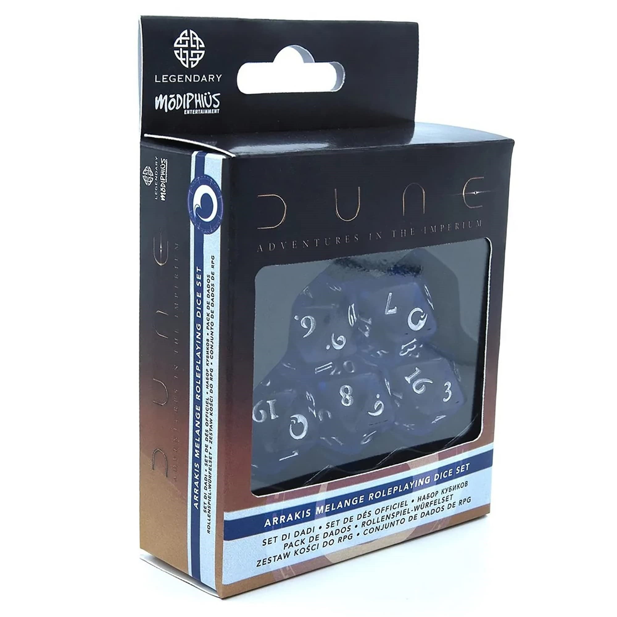 Dune Adventures In The Imperium: Arrakis Melange Dice Set - (5) Twenty Sided Rolplaying Dice Set - Translucent Blue With Silver