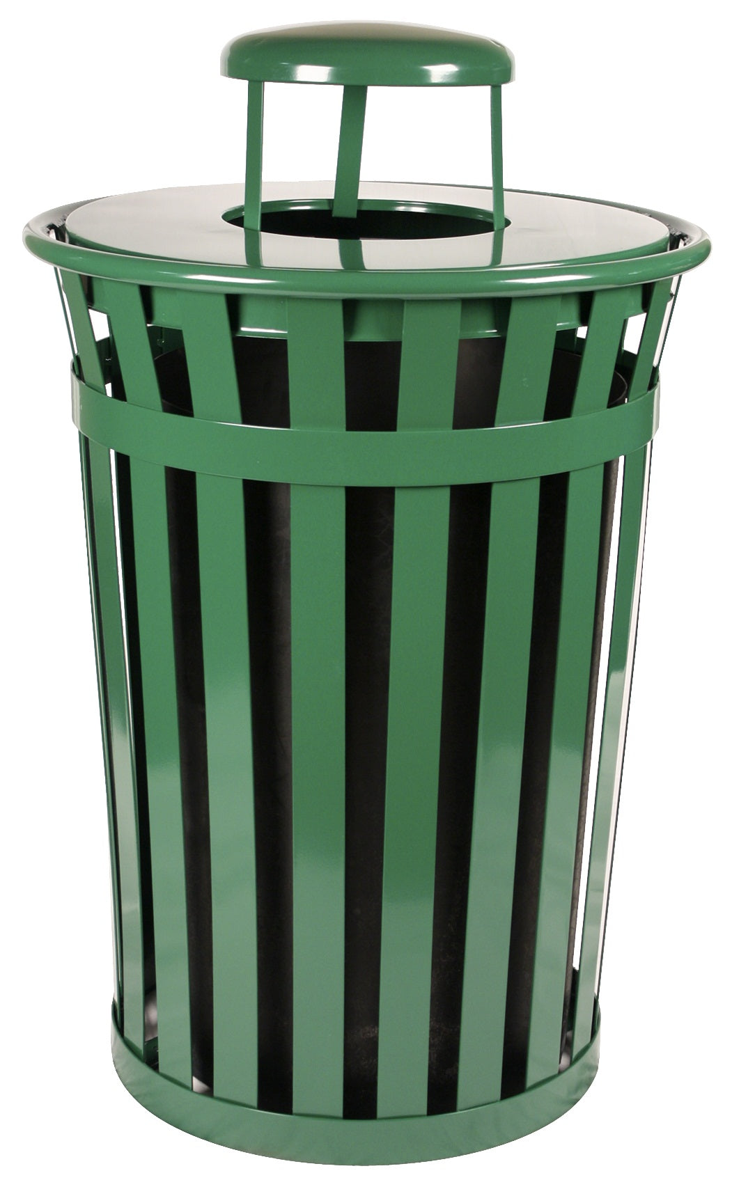 The M3601-Rc-Gn-Vv Ergode Trash Receptacle Is A High-Quality Outdoor Waste Receptacle Made From Durable Flat Bar Steel. It Is Designed To Deter Graffiti And Has A Metal Band At The Top For Added Strength. The Receptacle Is Coated With Tgic Powder To Withstand Outdoor Conditions. It Includes A Rain Cap Lid, Black Plastic Liner, Stainless Steel Leveling Feet, Lid Attachment Kit, And Anchor Kit At No Additional Cost. The Material Used For This Receptacle Is Steel.