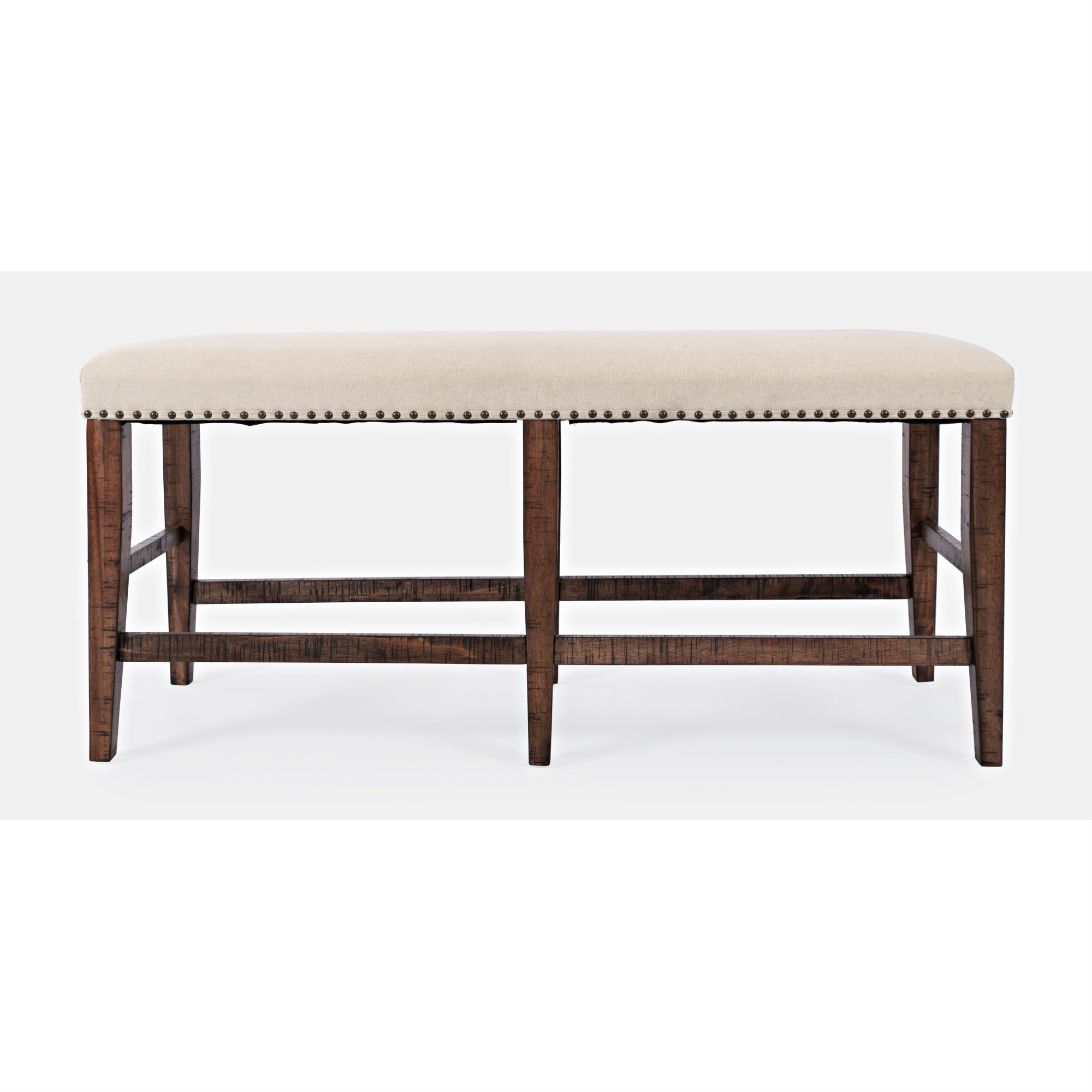 Timeless Mid-Century Style With Lush Upholstery In A Cream Finish Accented With Hand-Laid Nailhead Trim Make The Fairview Counter Height Bench A Statement Piece. Solid Acacia And Beautiful Veneer Wood With Subtle Hardwood Distressing On The Legs And Frame Adds Character And Makes Every Piece One Of A Kind. Available In Oak And Ash Finishes.