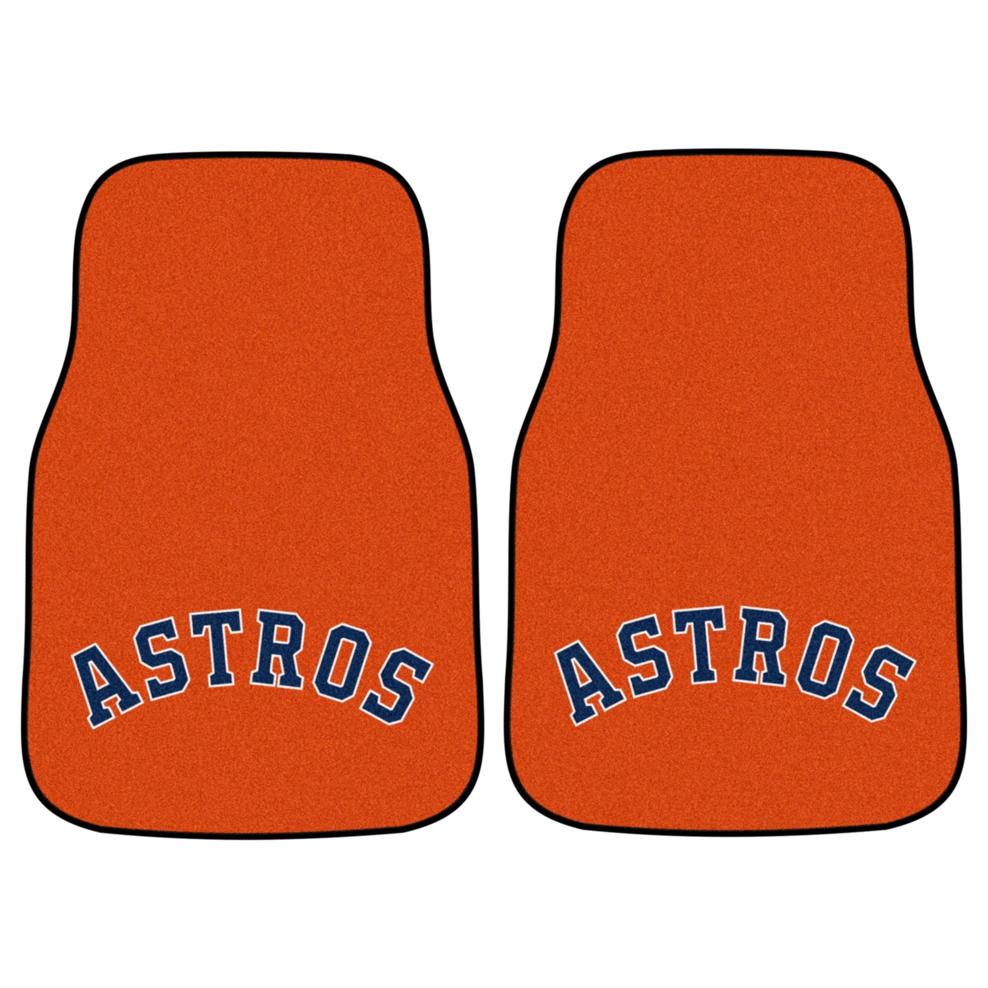 Houston Astros 2-Pc Carpet Car Mat Set - 17X27. Make A Bold Statement In Your Ride With Fanmats 2 Piece Set Carpet Car Mats. Featuring Your Favorite Teams Logo At The Bottom And The Primary Team Color As The Background These Mats Are Sure To Draw Attention. All Our Carpet Car Mat Sets Are Made At Our Factory In The Usa From 9Oz Nylon Carpet, Making Them Very Easy To Clean With A Quick Vacuuming. Nibbed Backing Keeps The Mats In Place With Driving. Designed To Fit As Many Different Vehicle Types As Possible The Mats Are 17 Inches Wide By 27 Inches Long.