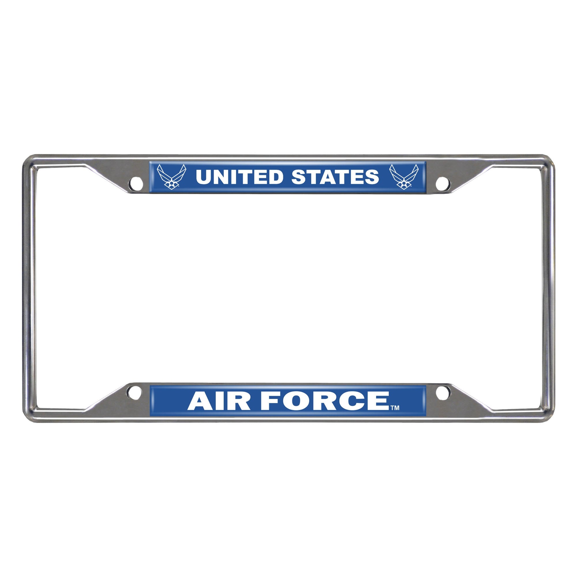 U.S. Air Force License Plate Frame 6.25X12.25. License Plate Frames From Sports Licensing Solutions Are Perfect For Accessorizing Your Vehicle And Showing Off Your Team Pride. Real Chrome Metal Keeps Them Looking Great Season After Season. Eye-Catching Team Name And Logo In True Colors. Fits Perfectly Around License Plates Without Covering Your Registration Sticker (If Applicable). Size Is 12.25 X 6.25.