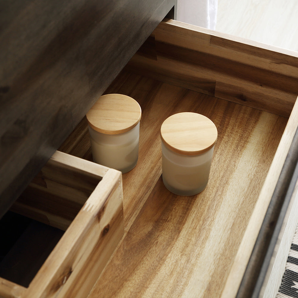 The Fresca Formosa 24 Wall Hung Modern Bathroom Cabinet W/ Top & Sink Is Superbly Crafted Of Solid Acacia Wood, Known For Its Magnificent Beauty And Durability. It Has A Warm Grey Finish With A Hint Of Brown Throughout, And A Natural Grain That Will Inject Luxurious Warmth Into Any Space. Two Solid Wood, Soft-Closing Dovetail Drawers Are Perfect For Organizing All Of Your Daily Essentials. The Solid Pine Drawers Are Clear Coated And Feature A Mitered, Wrap-Around Design That Adds To The Superior Detailing. Cove Routed Pulls Are Carved Directly Into The Drawers Keeping The Design Sharp And Sophisticated. Gracing The Top Of The Cabinet Is A Stunning Quartz Stone Countertop And Ceramic Undermount Basin. The White Ceramic Basin Has A Smooth, Contoured Design, While The Gorgeous Quartz Stone Countertop Has Clean, Square Edges. The Basin Is Equipped With An Overflow And The Countertop Has Been Pre-Drilled To Accommodate A Single Hole Faucet (Sold Separately). It Includes Installation Hardware.