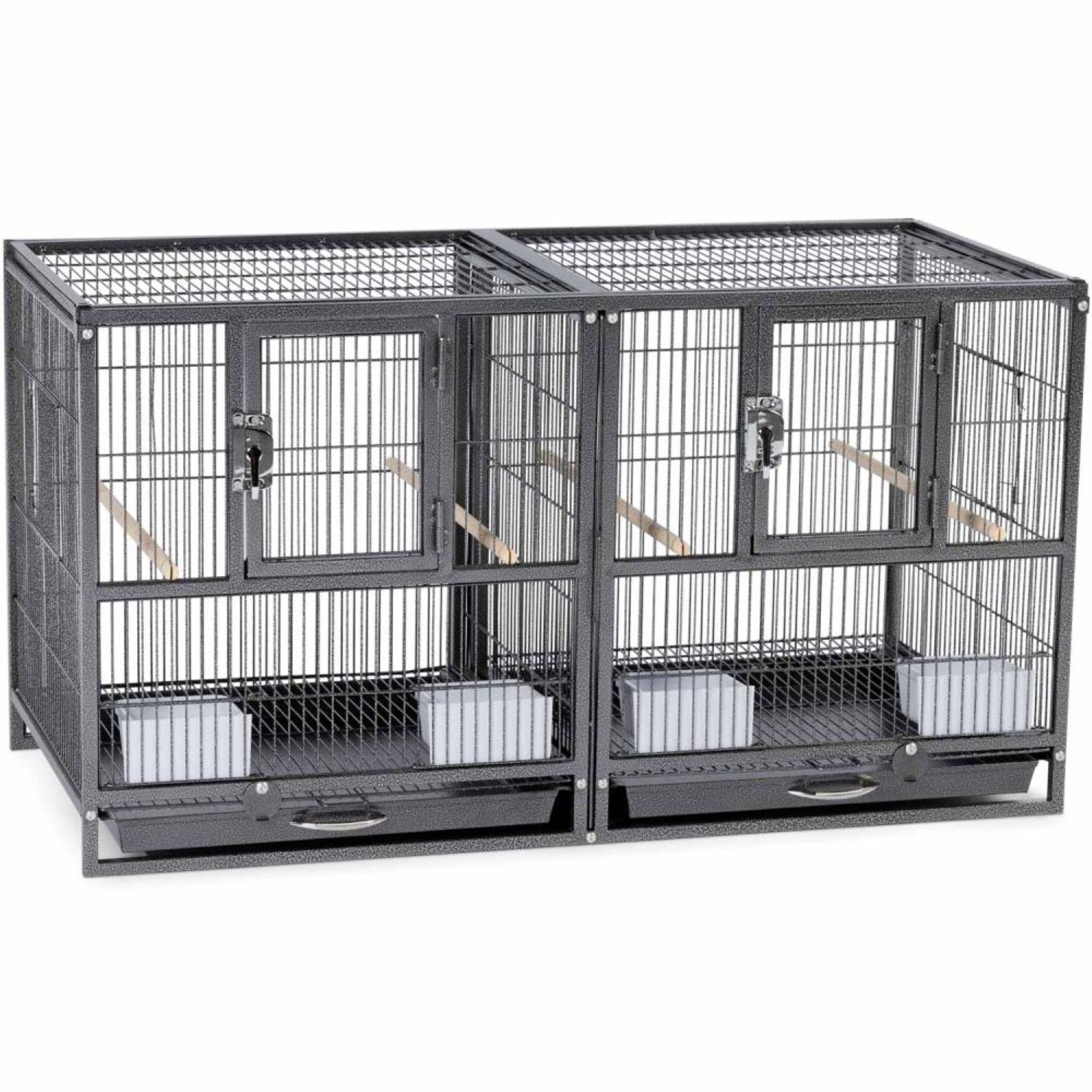 Prevue Pet Products Hampton Deluxe Divided Breeder Cage F075 In Black Hammertoneoffers Quality Powder-Coated Steel Construction With Convenient Features Built-In. Use The Included Divider To Create Two Separate, Smaller Cages Or Remove Dividerto Use As One Large Cage. Each Cage System Contains Two Front Doors With Secure Locks, Side Nesting Doors And Pull Out Trays And Grilles Complete With Wind Bell Lock. Ideal For Multiples Of Small Birds Such As Canaries, Finches And Parakeets, Our Hampton Divided Breeder Cage Measures 37 &Frac12;' Long, 18' Wide And 20 &Frac12;' High With &Frac12;' Wire Spacing. Four Perches And Four Plastic Cups Are Also Included. Spacious Enough For Use As An Independent Unit, You Can Also Stack Multiple (Up To Three) Hampton Deluxe Divided Breeder Cages Or Combine Your F075 With Our Hampton Deluxe Divided Breeder Cage System With Stand F070.
