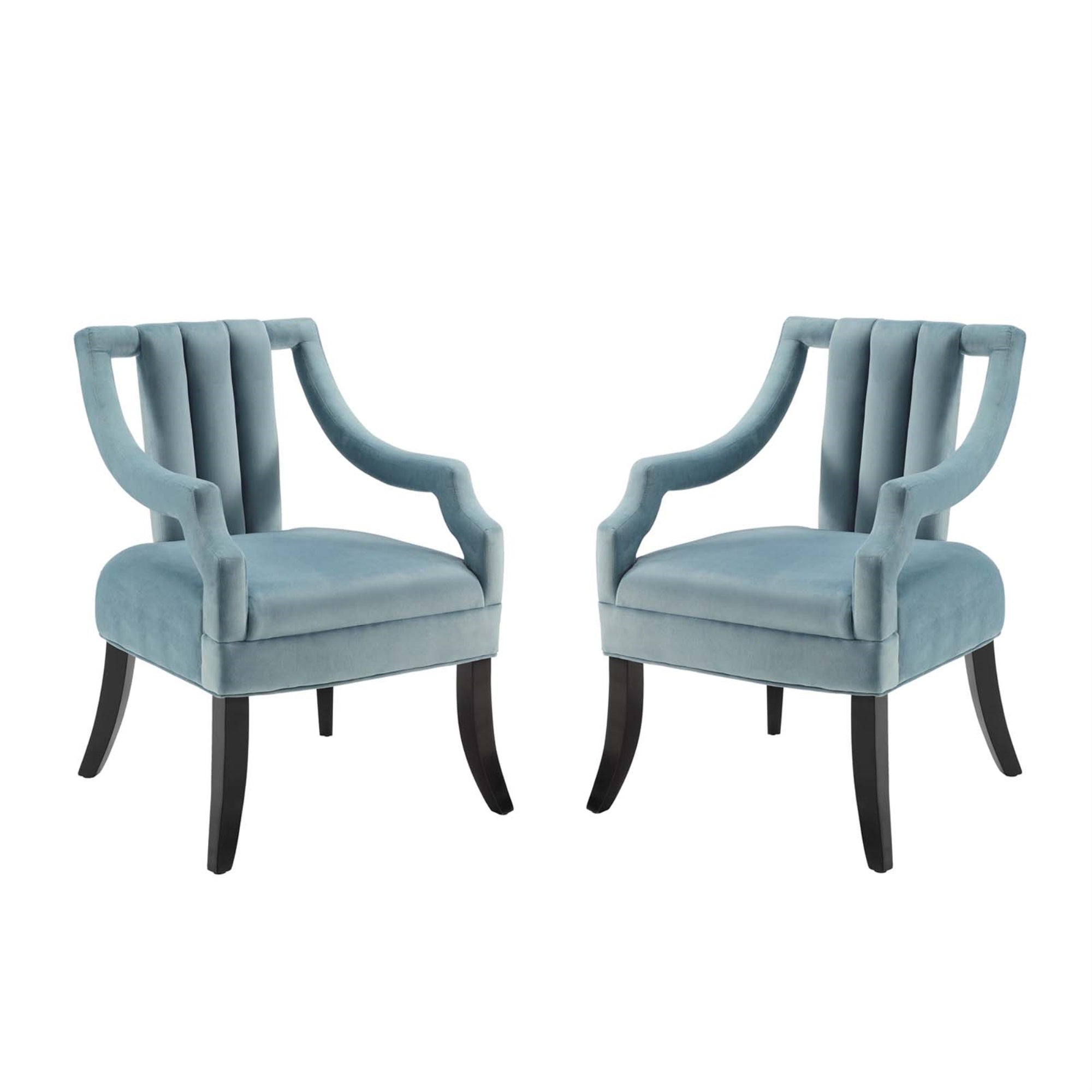Embrace Lively Conversation With The Harken Accent Chair. Sloped Armrests Meet A Cut-Away Vertical Tufted Backrest For A Decor Update That Adds Vintage Glamour To Any Space. Harken Comes Upholstered In Stain-Resistant Performance Velvet Upholstery, With Dense Foam Padding, And Black-Stained Birch Wood Legs With Non-Marking Foot Caps And A Sinuous Spring Support System That Provides Gentle Give. Harken'S Versatile Design Makes It The Perfect Accent Chair To Complement Your Living Room, Lounge Area, Entryway, Bedroom, Or Home Office.Set Includes:Two - Harken Accent Chair