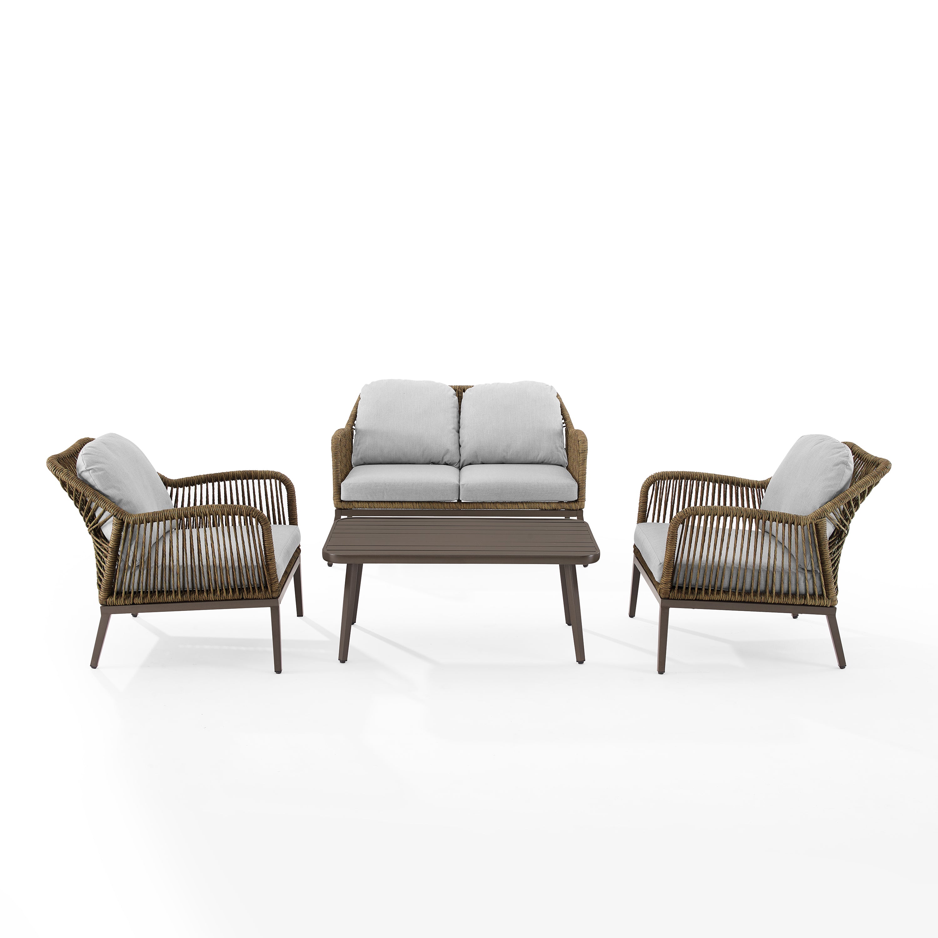 The Haven 4Pc Patio Conversation Set Delivers An On-Trend Look In A Traditional Package With The Look Of Natural Rope Over Powder-Coated Steel. Outfitted With Lush Weather-Resistant Cushions, The Two-Seat Outdoor Sofa And Patio Chairs Offer A Fetching Retreat From The Daily Grind, While The Metal Slatted Coffee Table Provides A Sturdy Place To Rest A Drink. With The Perfect Balance Of Modern Metal And Boho Chic, This Patio Set Will Have You Relaxing In Style.